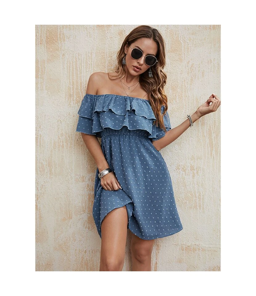 Bead Ball Solid Color Ruffled One Shoulder Dress Wholesale Dresses N4623040100031