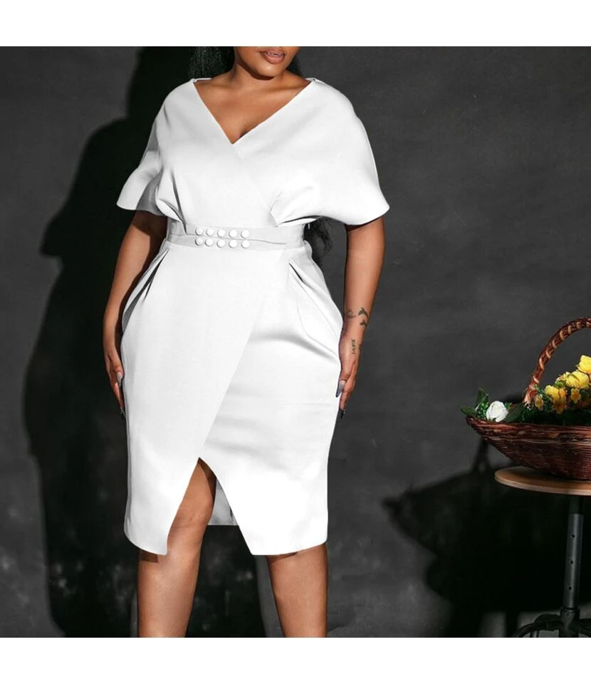 Belt Slit Short Sleeve Pleated Slim Dress Wholesale Dresses N4623050300072