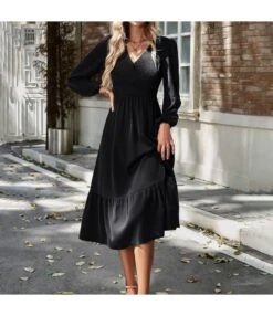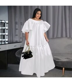 Temperament Bubble Sleeve Patchwork Strapless Pearl Open Long Dress Wholesale Dresses V5923032800058