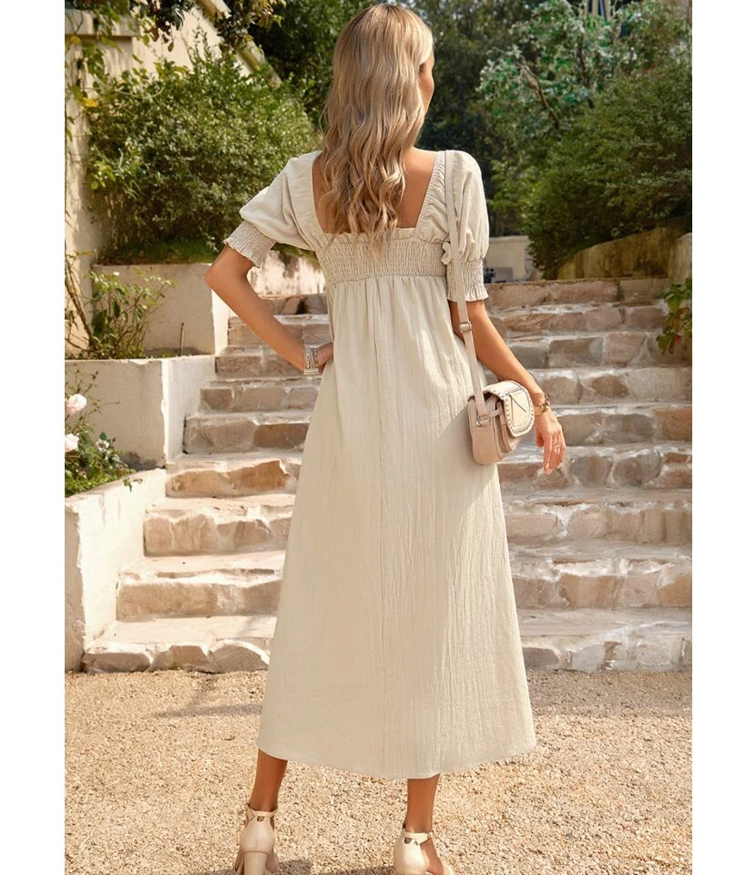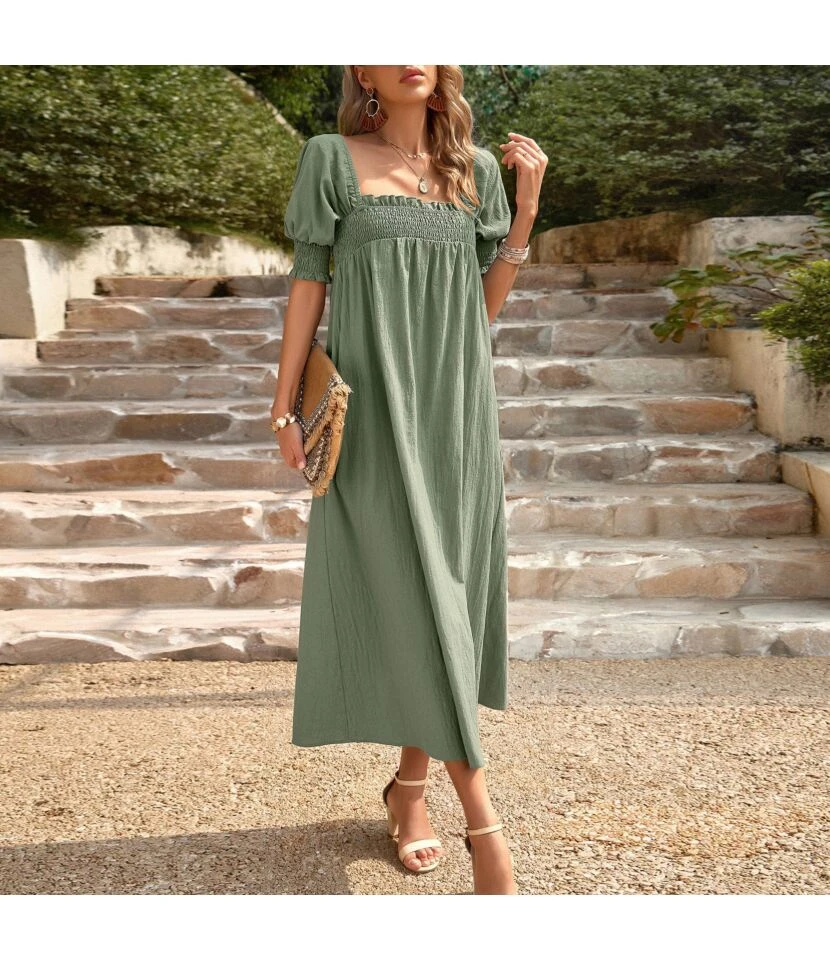 Elegant Flower Petal Sleeve Solid Color Square Neck Long Dress Wholesale Dresses V5923041200032