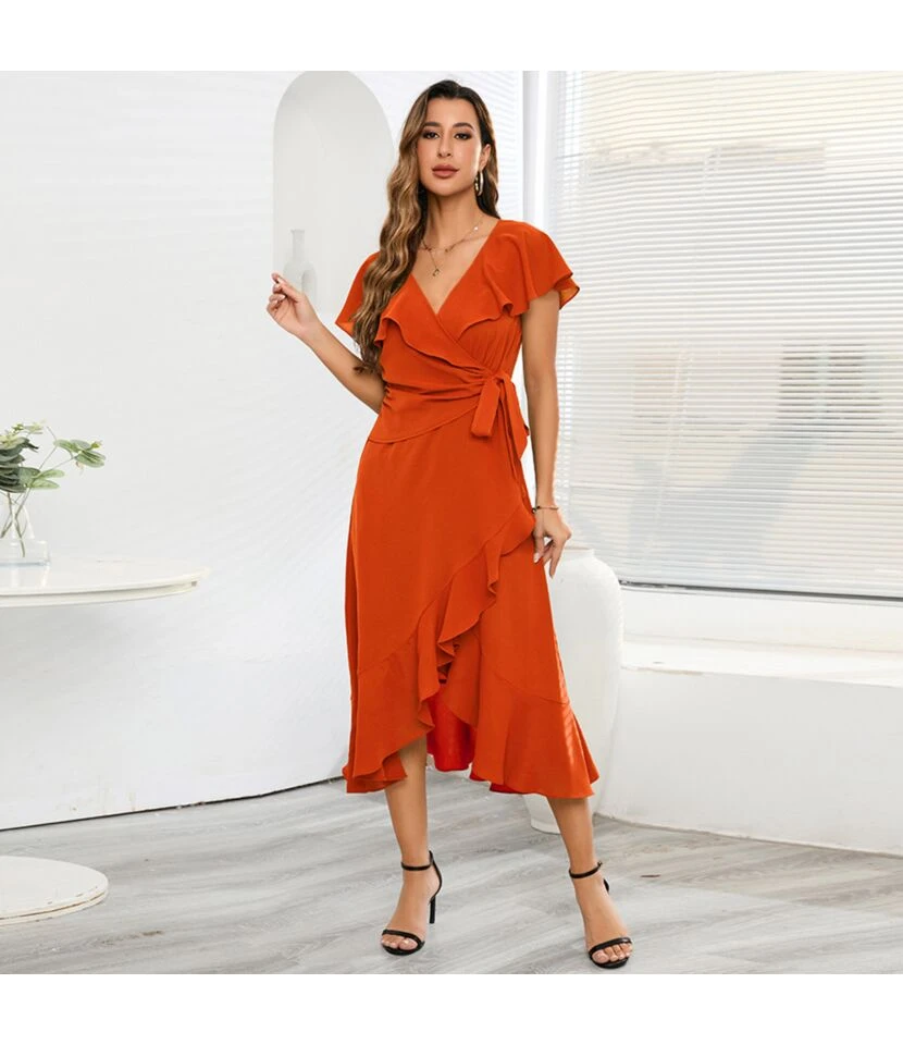 Elegant Lotus Leaf Swing V-Neck Slim Chiffon Ruffle Dress Wholesale Dresses N5323030300063