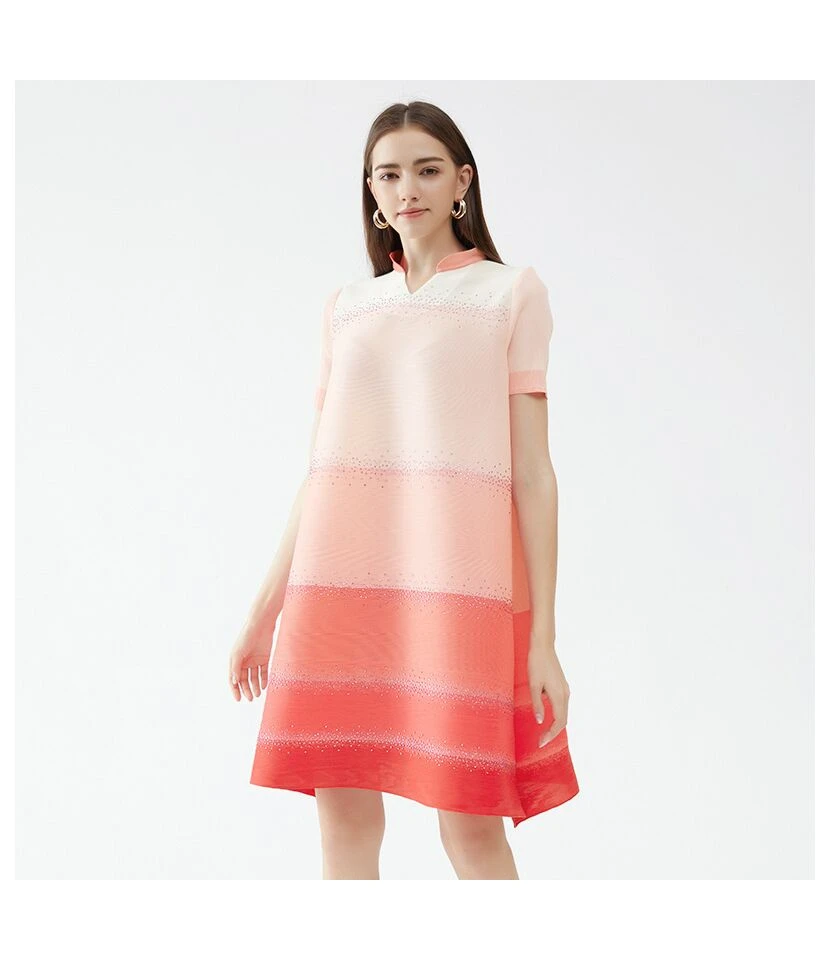 Elegant Short Sleeve V-Neck Colour-Blocked Striped A-Line Dress Wholesale Dresses N5923082300010