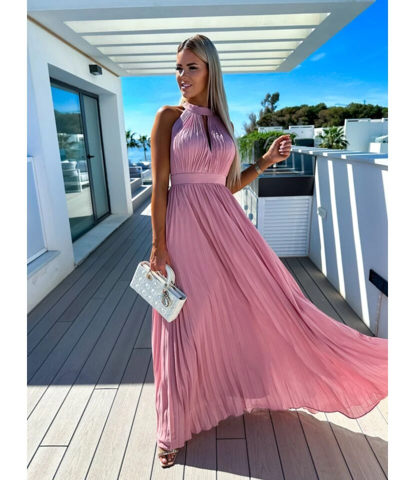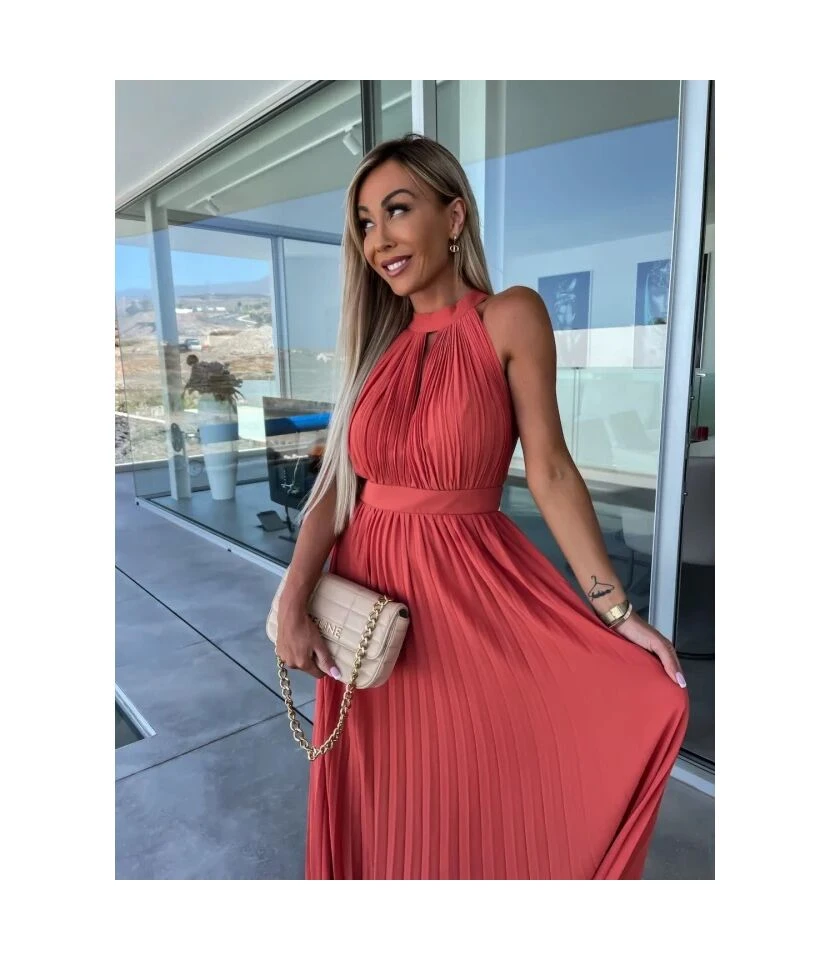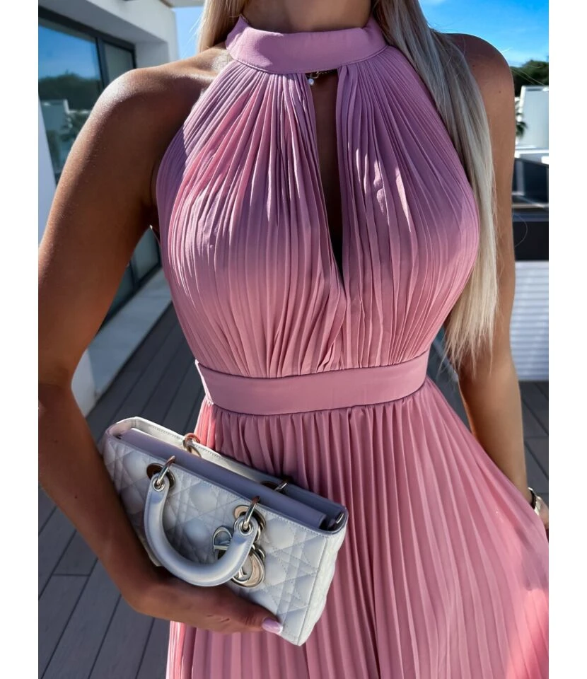 Elegant Solid Colour Sleeveless Hanging Neck Pleated Big Pendulum Dress Wholesale Dresses N5923090100072