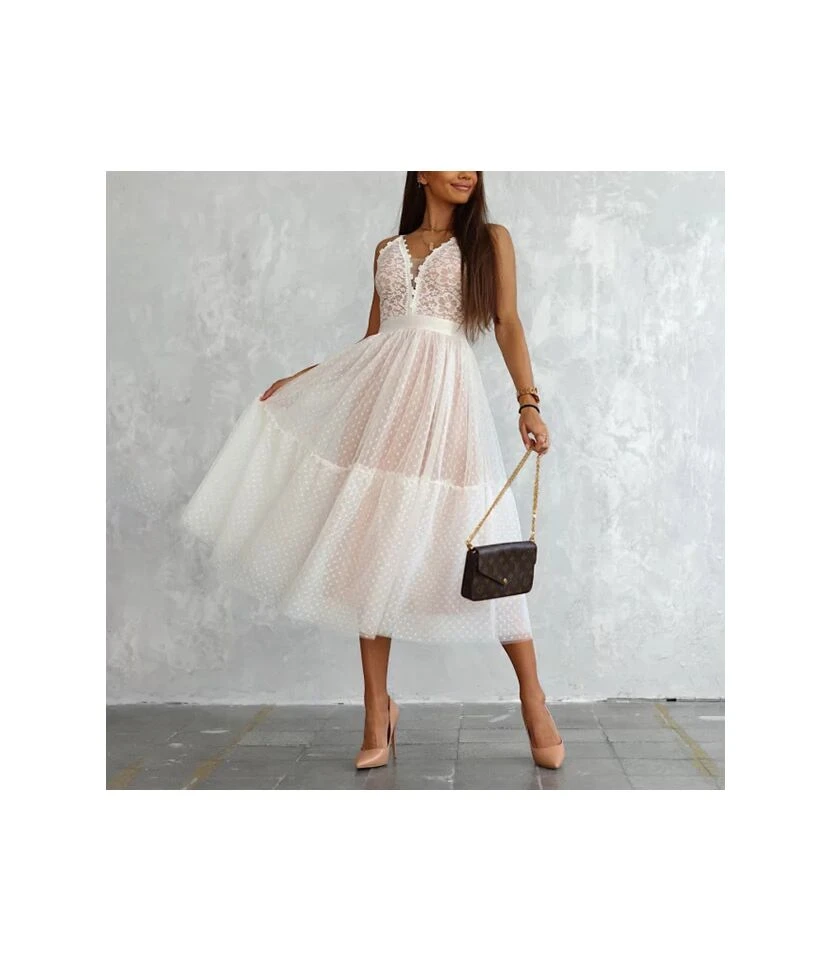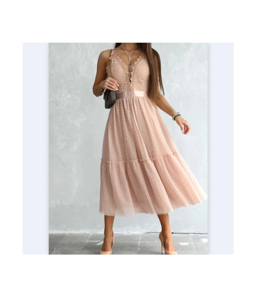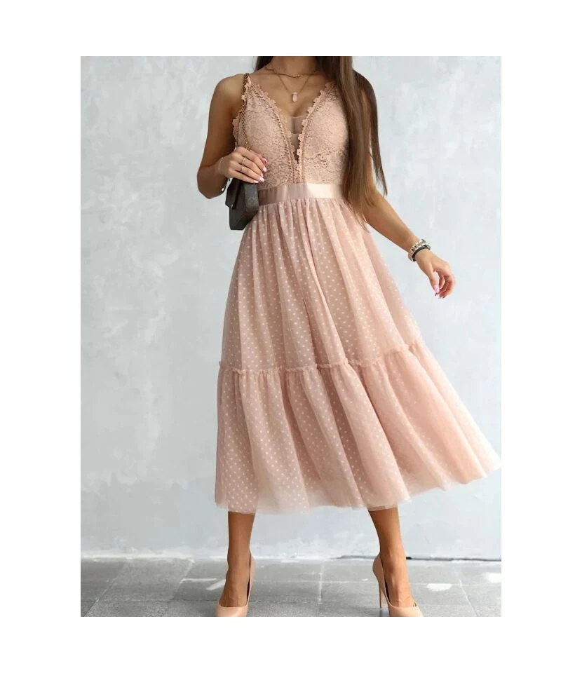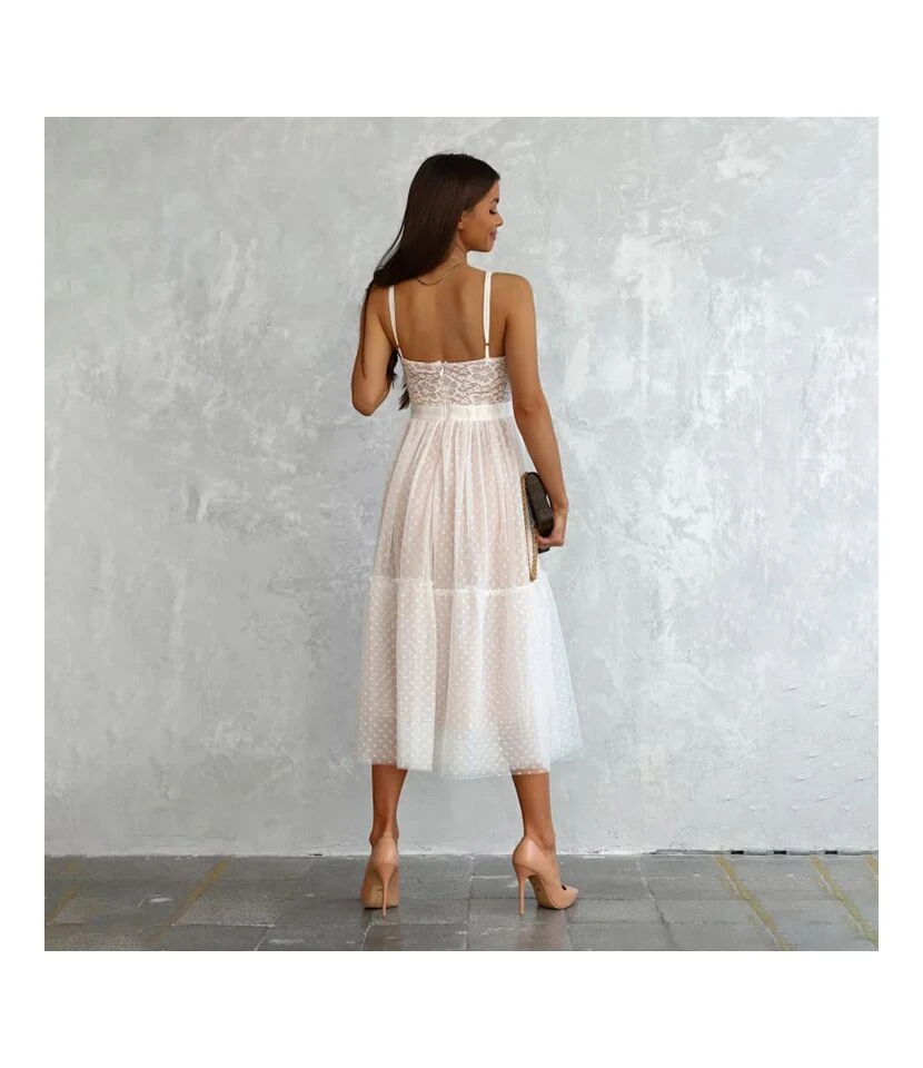 Elegant Suspender Lace Mesh Stitching Backless Dress Wholesale Dresses N462303280017218