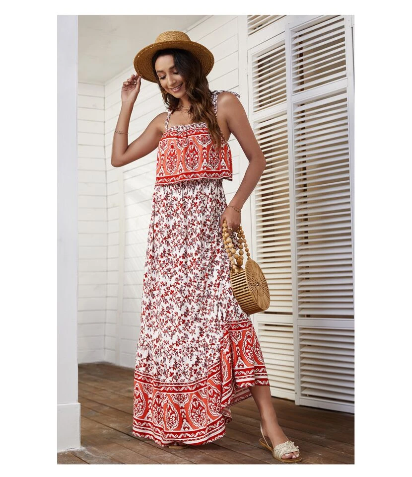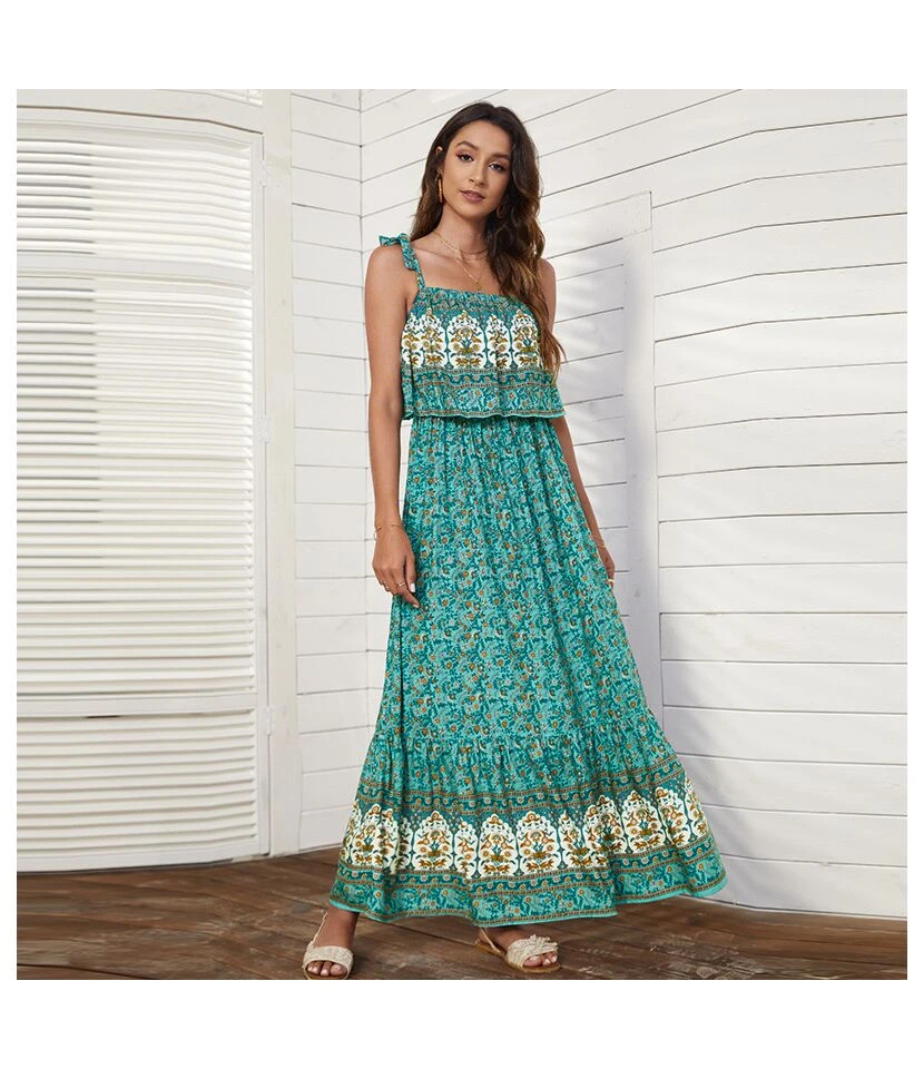 Ethnic Style Print Lace-Up Boho Sundresses Sexy Vacation Maxi Dresses Wholesale Bohemian Dress For Women SDN532226