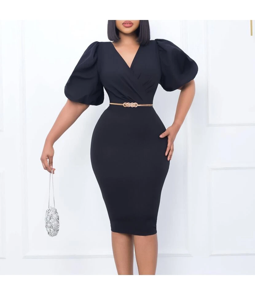 Fashion Bubble Sleeve V-Neck Hip Pencil Dress Wholesale Dresses N5923080800072