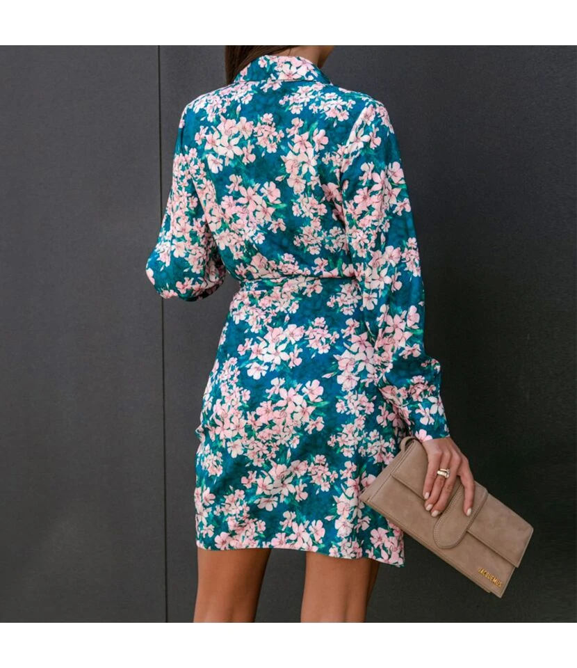 Fashion Lapel Single-Breasted Lace-Up Cross Dress Long Sleeve High Waist Wholesale Dresses SDN562477
