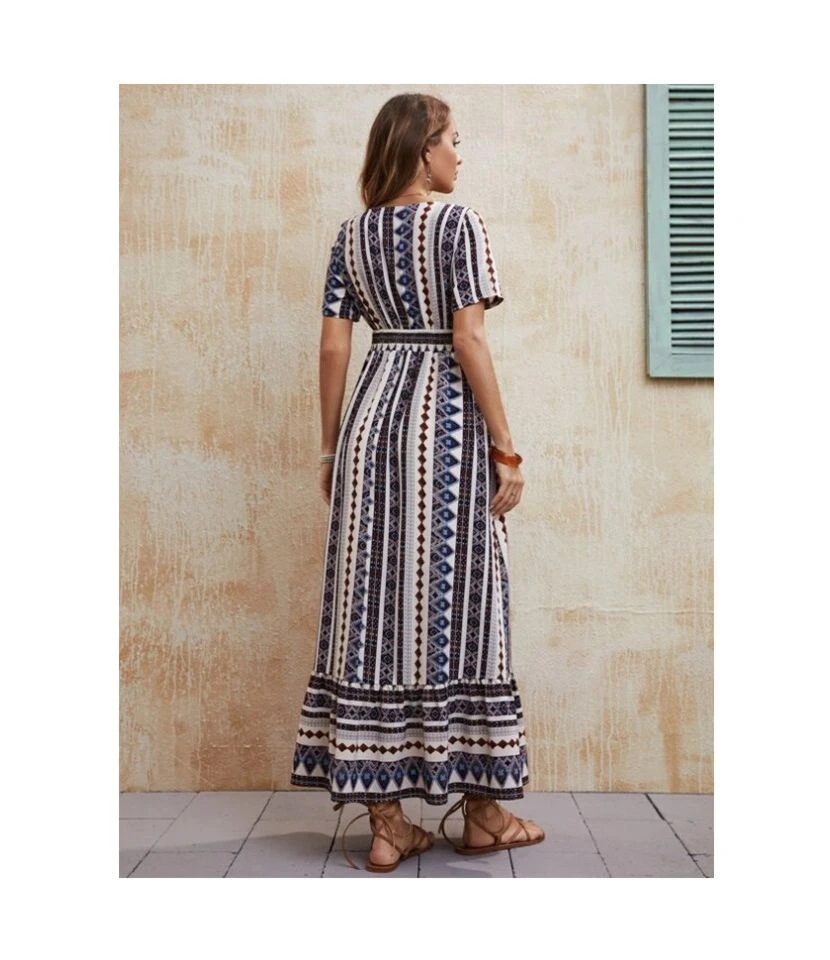 Fashion Printed Short Sleeve V-Neck Vacation Maxi Dresses Wholesale Bohemian Dress For Women SD531450