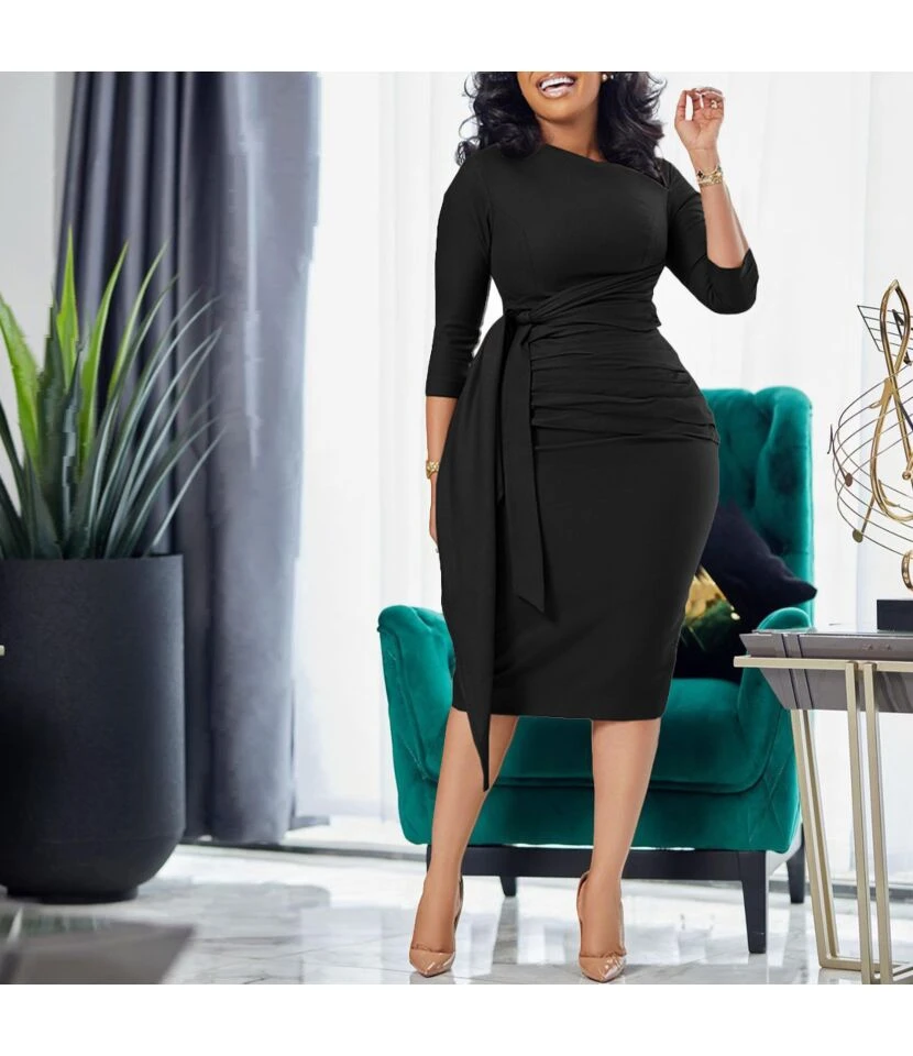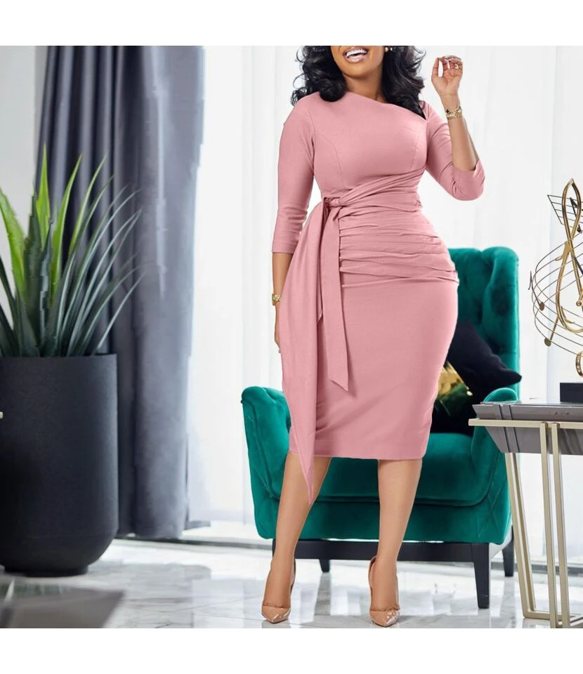 Fashion Solid Color Seven Part Sleeve Pleated Strapped Dress Wholesale Dresses N5323032800174