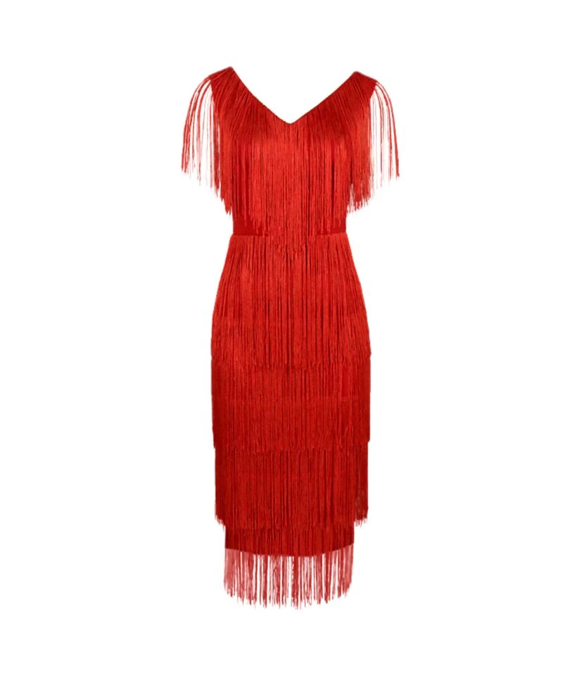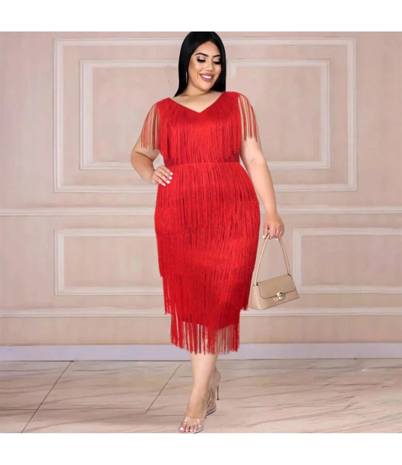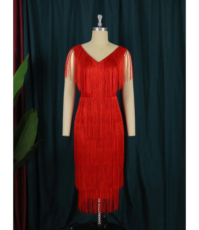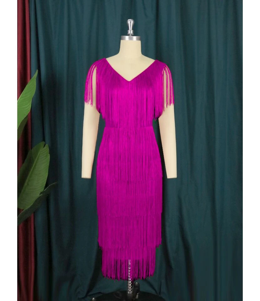 Fashion V-Neck Sleeveless High Waist Mid-Length Fringe Hip Dress Wholesale Dresses V5923050600028