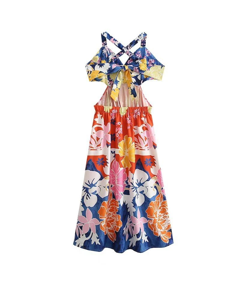 Floral Print Cut Out Waist Backless Sexy Slip Dress Wholesale Dresses SDN534691