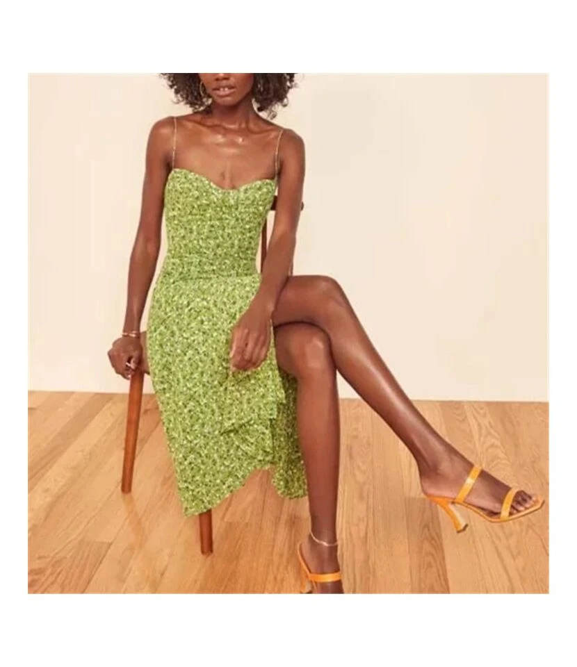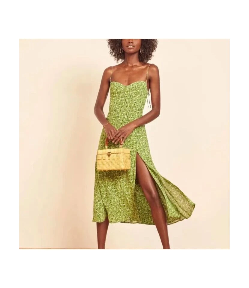 Floral Print Lace-Up Side Slit Sling Chiffon A-Line Chic Dress Sexy Wholesale Dresses SDN580389