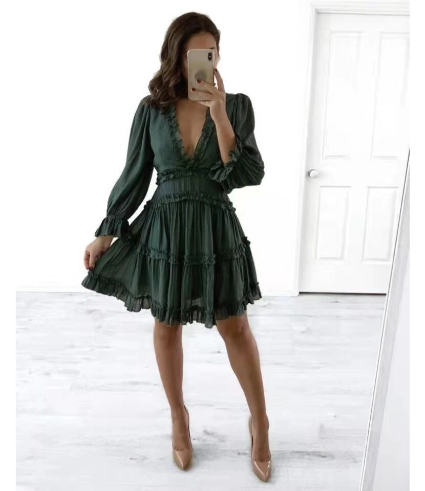 Floral Print Long Sleeve Vacation Dress Wholesale Dresses Backless Puff Sleeves SD203967