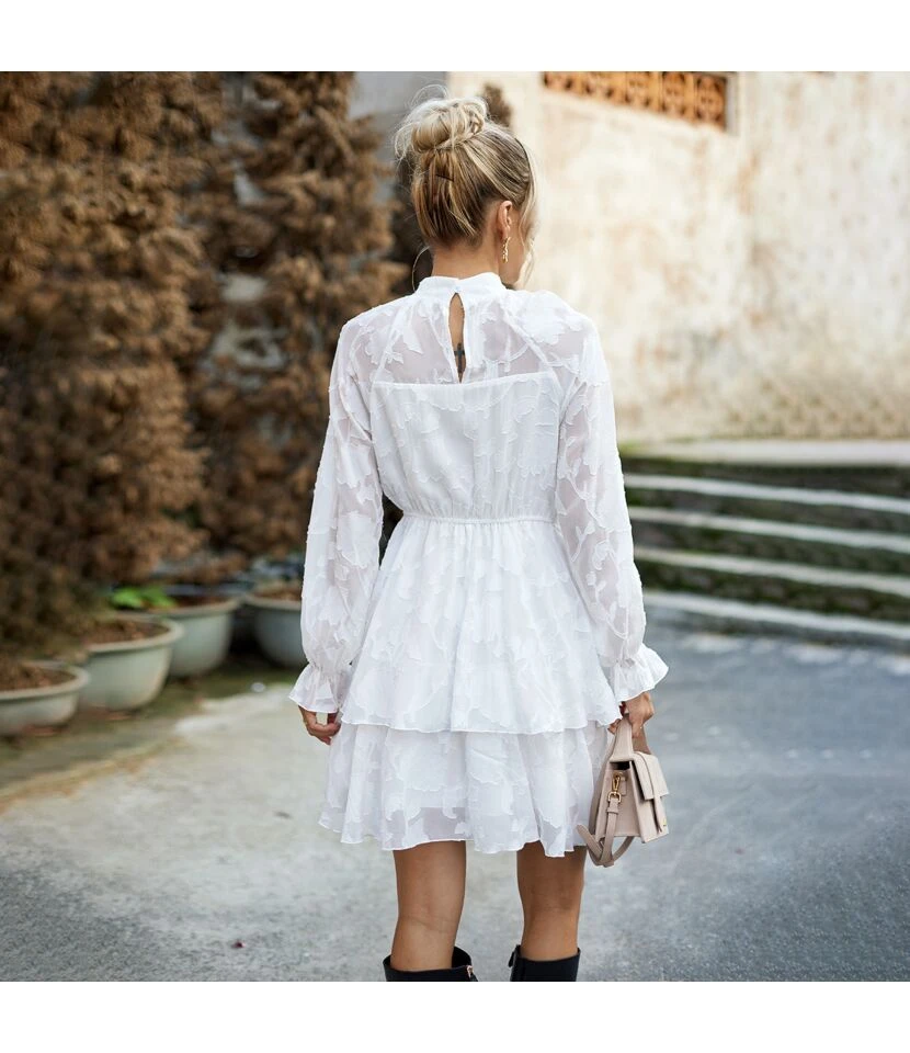 Jacquard Temperament Elegant Round Neck Long-Sleeved Dress Wholesale Dresses N4623071700111