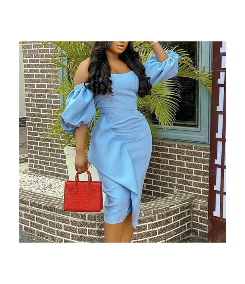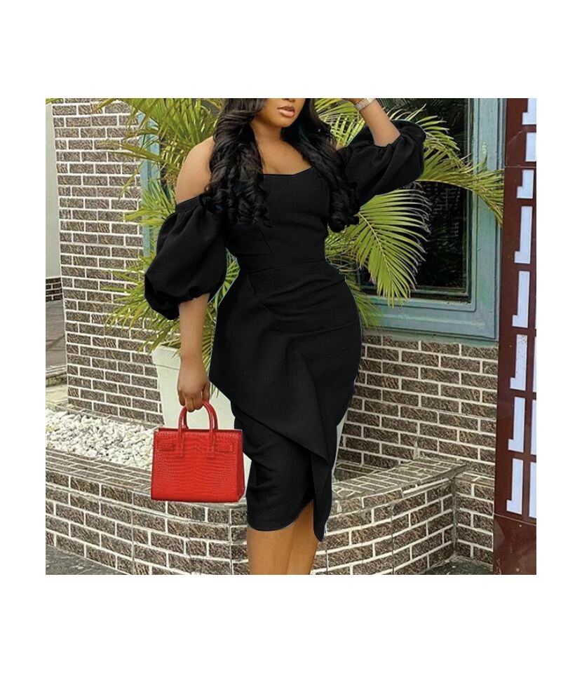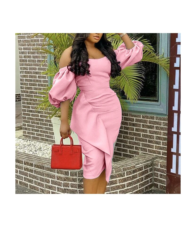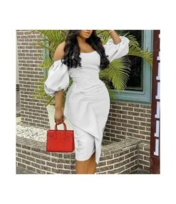 Lantern Sleeve High Waist Slimming Irregular Ruched Ruffled Tube Top Dress Wholesale Dresses N5323032000047