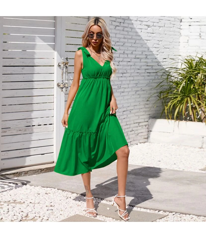 Large Swing Suspenders Sleeveless Solid Color Low Cut Dress Wholesale Dresses N4623041000161