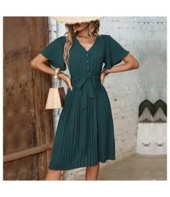 Elegant Casual Fashion High Waist V-Neck Holiday Long Smocked Dress Wholesale Dresses N5323030700084