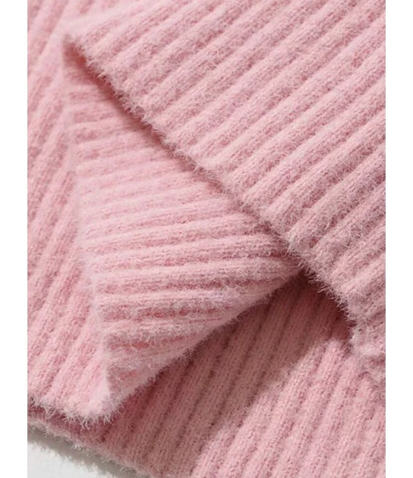 Mock Neck Plain Ribbed Knitting Dress With Sleeves