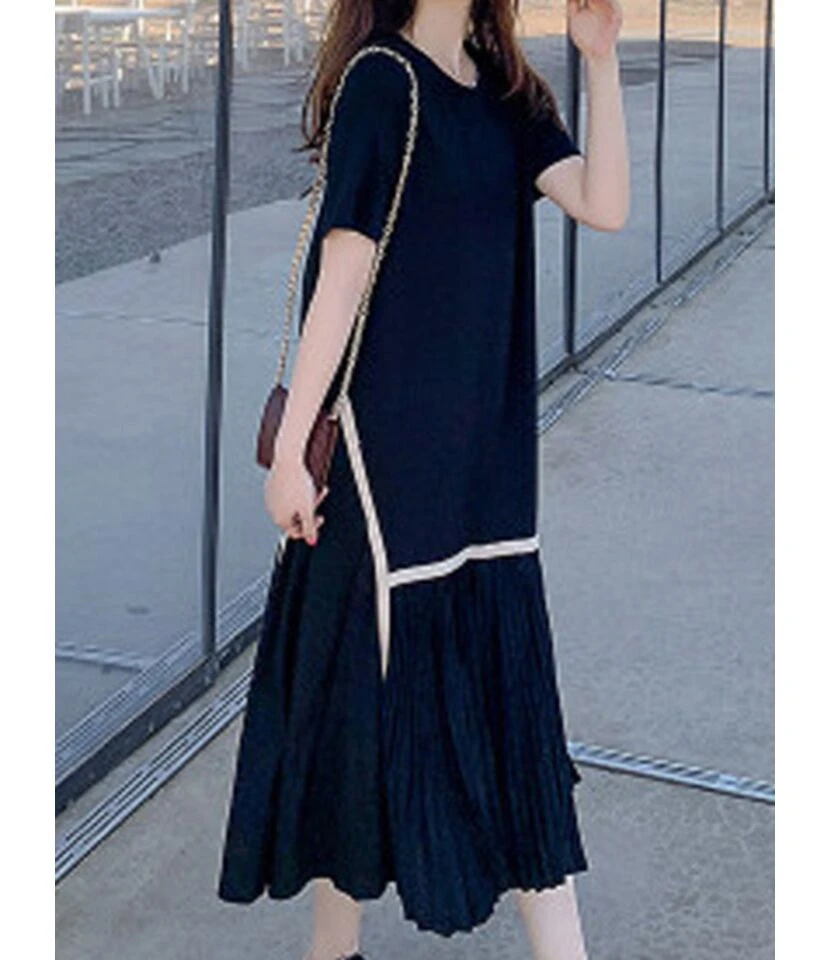 Plus Size Crew Neck Stitching pleated HEM Chiffon Dress comes up with a lot of secret benefits. You will experience it as extremely lightweight and breathable. When it comes to comfort and beating the summer scorching heat then trusts me this outfit is one of the most suitable options. This outfit is especially for plus-size women who have not the capability to tolerate the summer heat. Now there is no need to worry about excessive perspiration because pleated HEM Chiffon Dress is here for you. This outfit’s elegant and floating appearance is just because of the chiffon material. It is very easy to dress up and down without putting in any effort. Ground it with sneakers as well as long boots, both will enhance the appearance. Its print is a color block that captures other interests. Another thing that makes this outfit attractive is the black color, you can also hold on a beautiful purse for completing the outfit look.