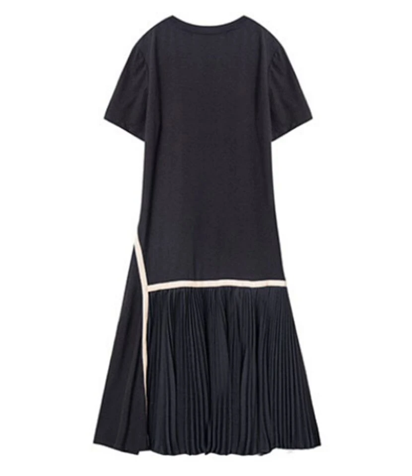 Plus Size Crew Neck Stitching pleated HEM Chiffon Dress