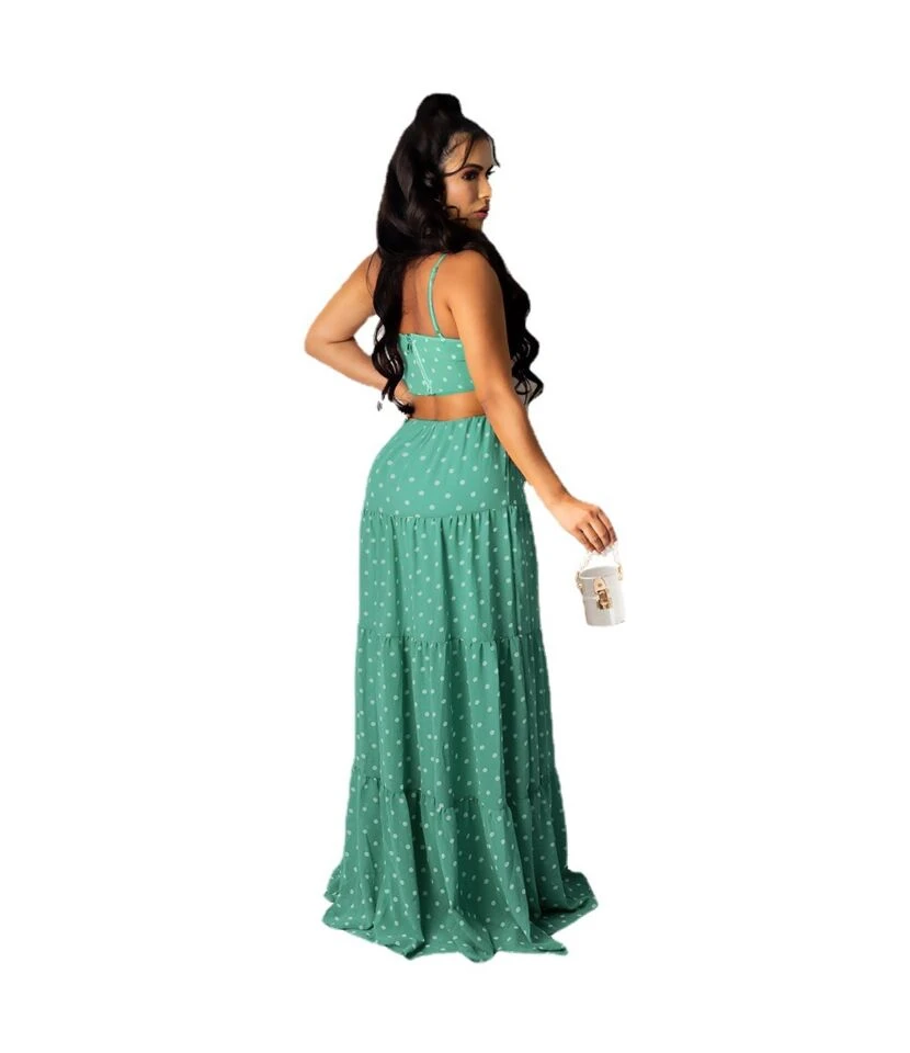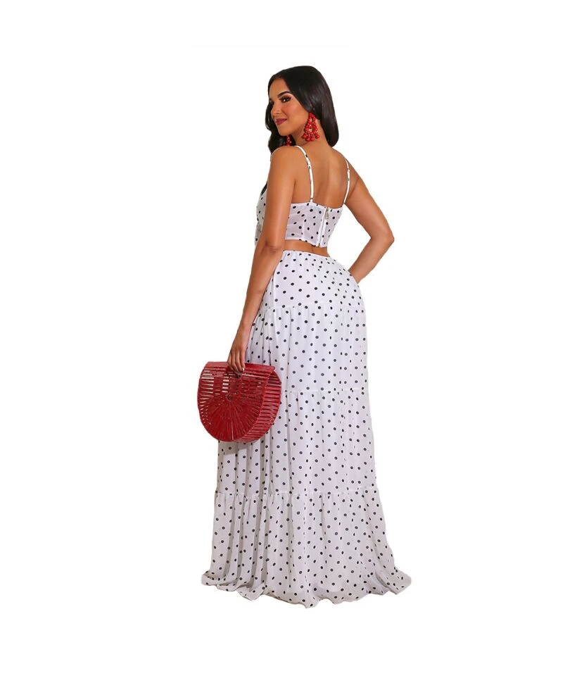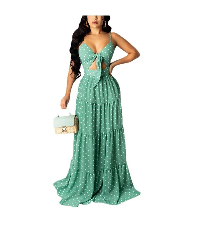 Polka Dot Print Bowknot Sundresses Cutout Sling Smocked Dress Sexy Wholesale Maxi Dresses SDN533158
