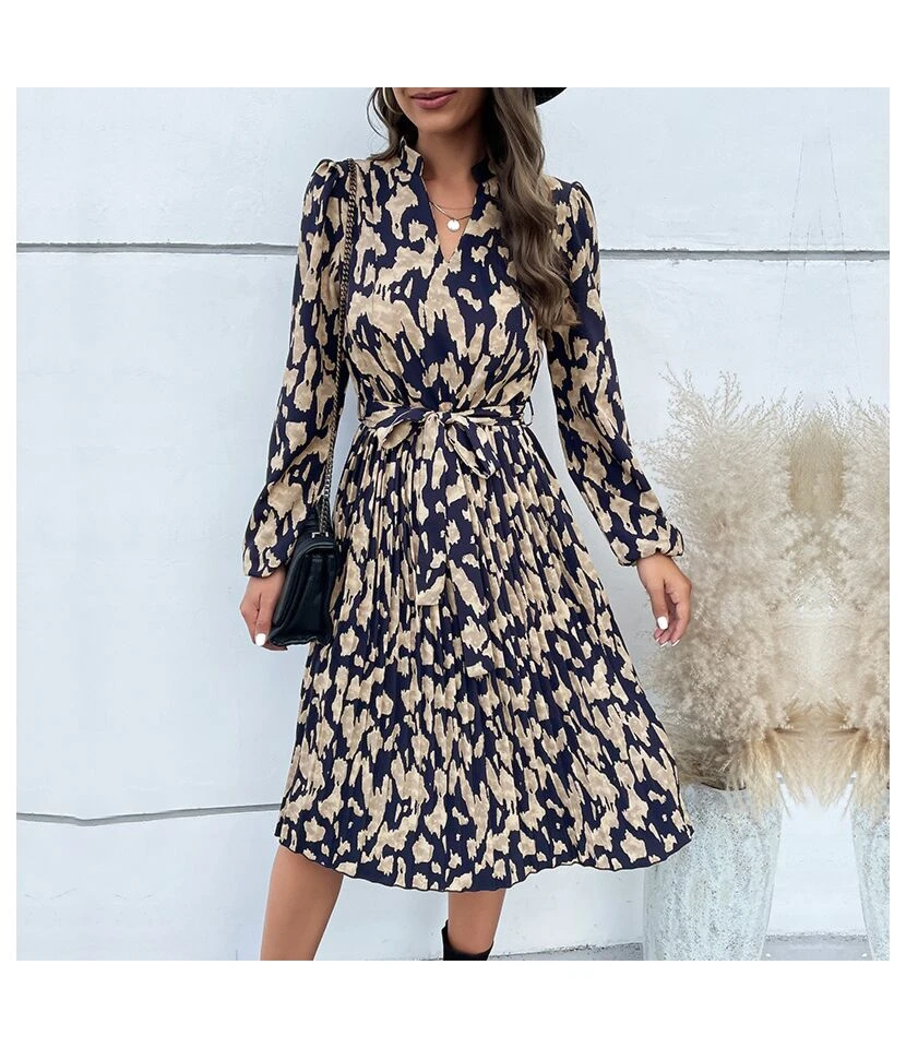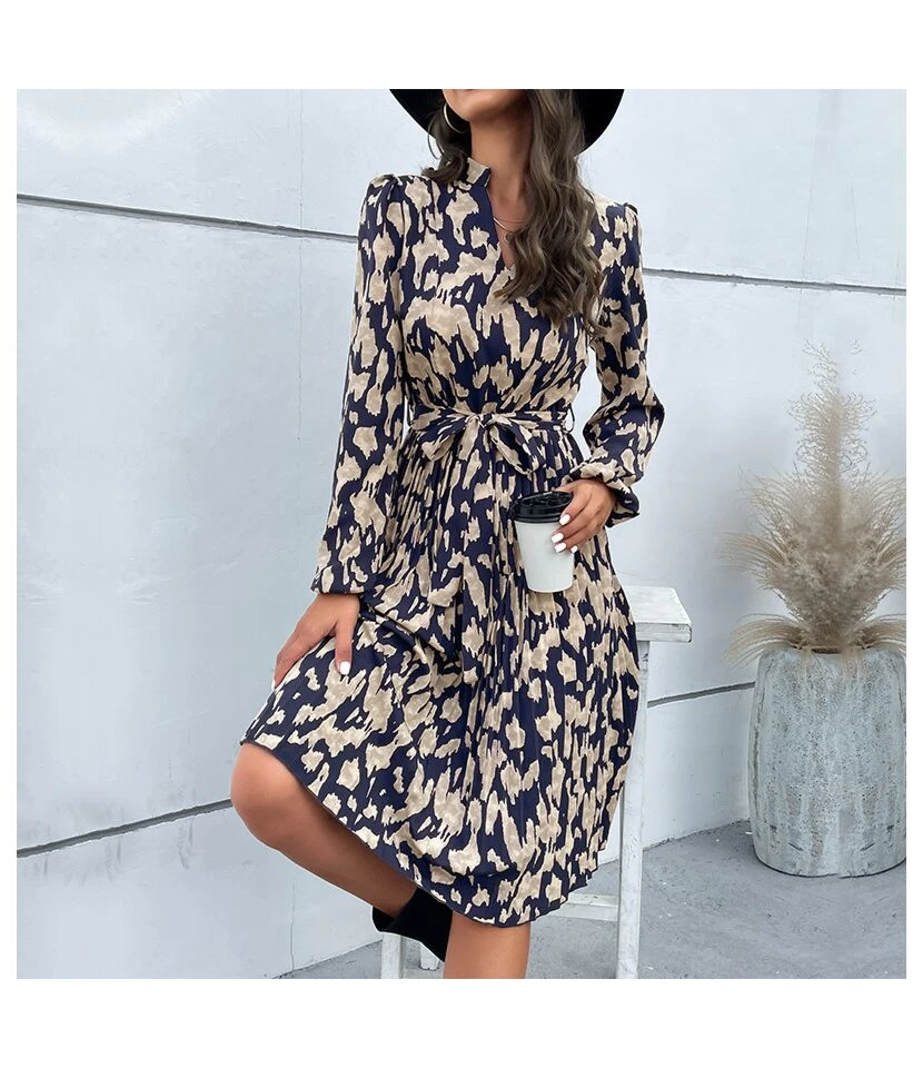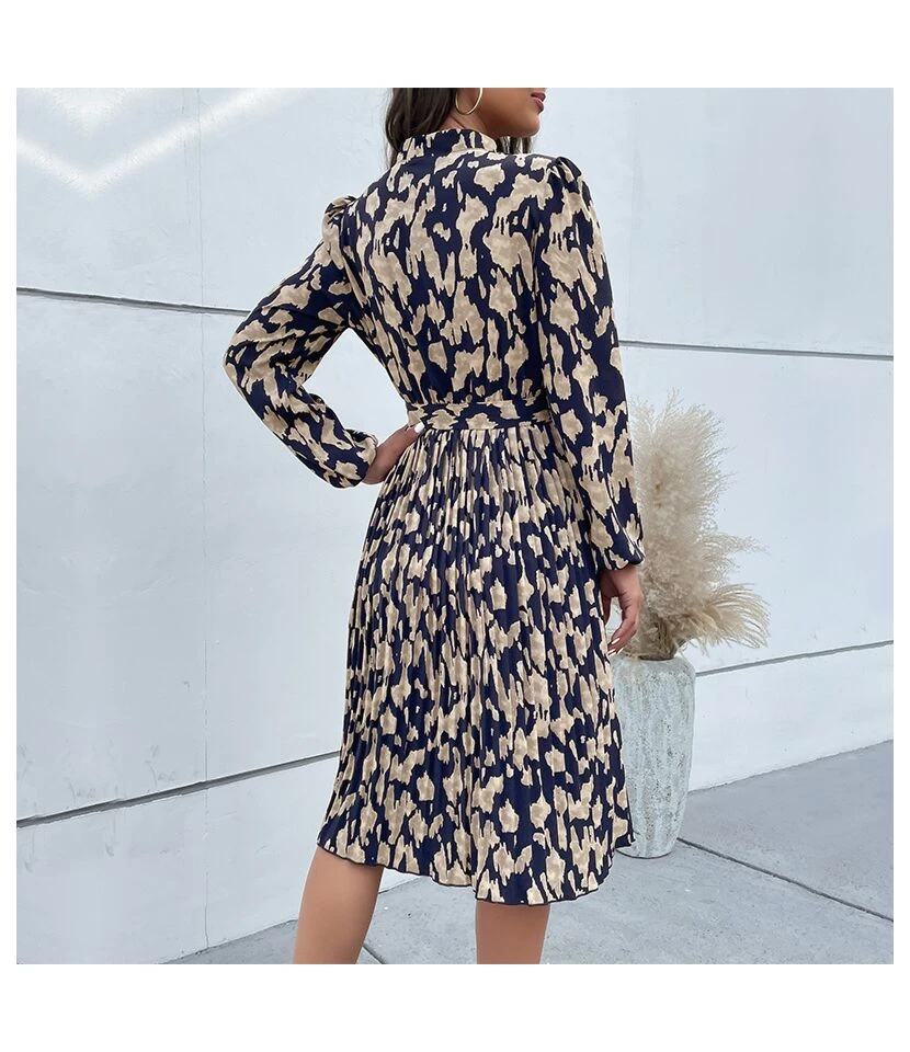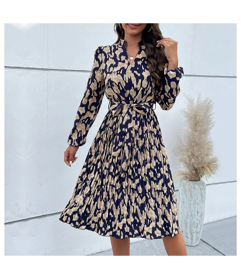 Printed Long Sleeve Tie-Up Casual Swing Pleated Dress Wholesale Dresses SDN538421