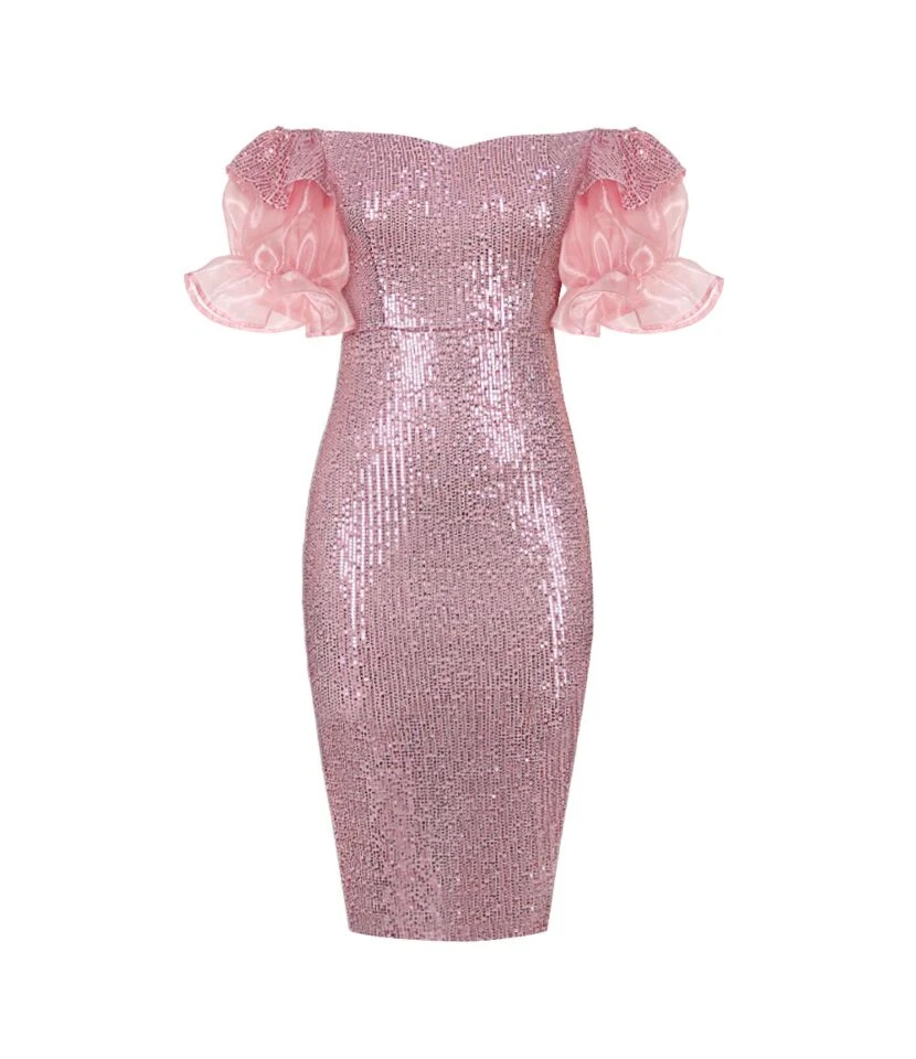 Puff Sleeve Off Shoulder Sequined After Party Slit Dress Wholesale Dresses N4623050600006