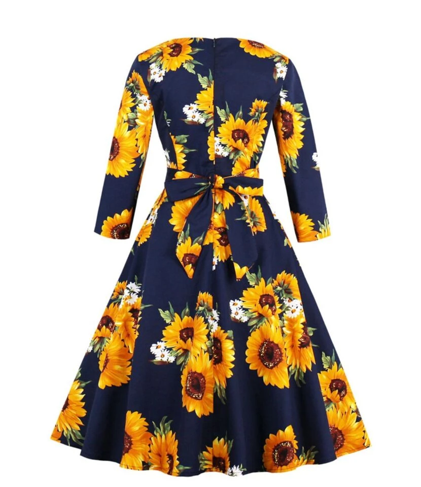Be the first to review “Retro A-line Sunflower Print Tie Waist Dress” Cancel reply