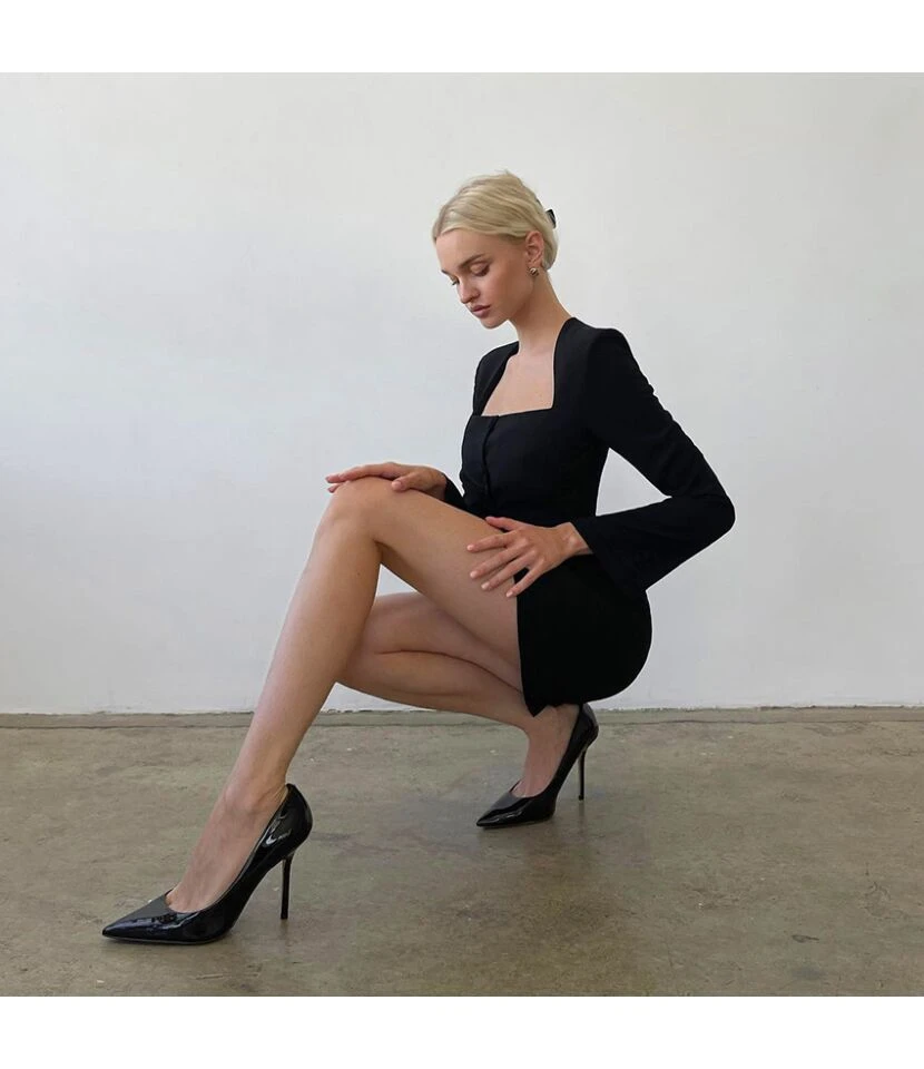Right Angle Shoulder Button Slim Long Sleeve Commuter Dress Wholesale Dresses N467123032800165