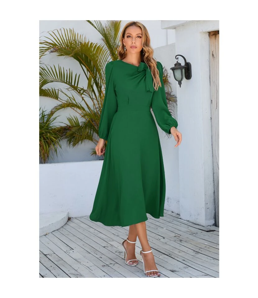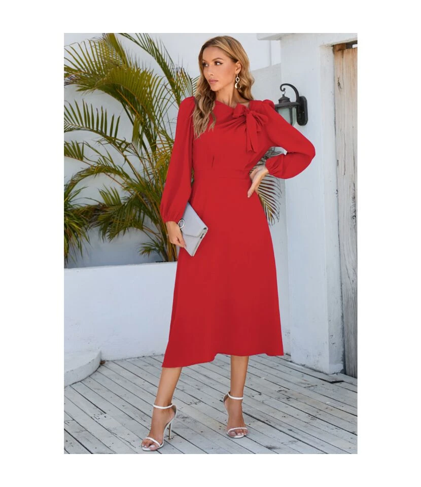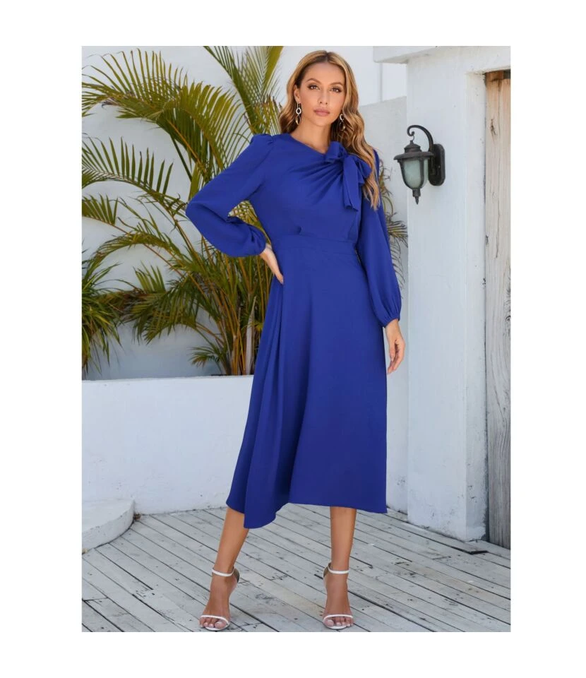 Round Neck Bowknot Elegant Lantern Sleeves A-Line Retro Dress Wholesale Dresses SDN537251