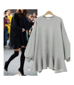 Round Neck Lantern Sleeve Sweatshirt Dress SD070138