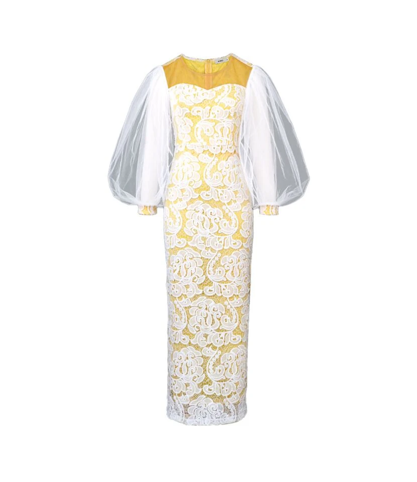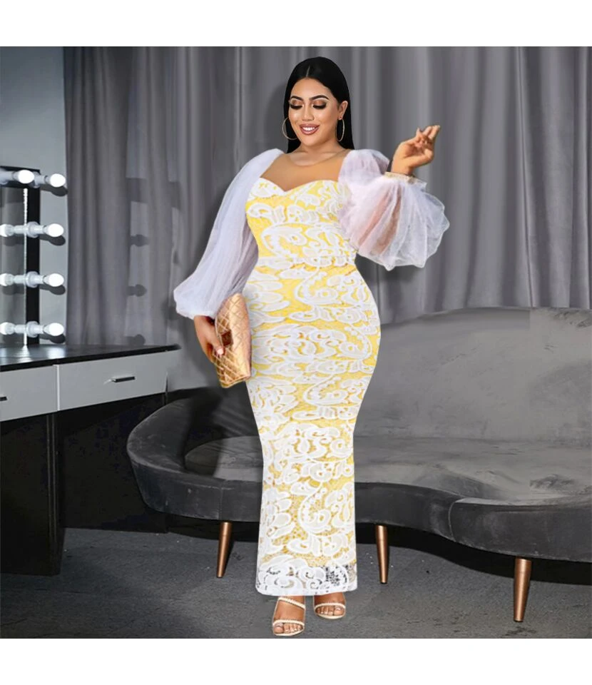 See-Through Round Neck Bubble Sleeve Lace One-Step Dress Wholesale Dresses V5923050600032