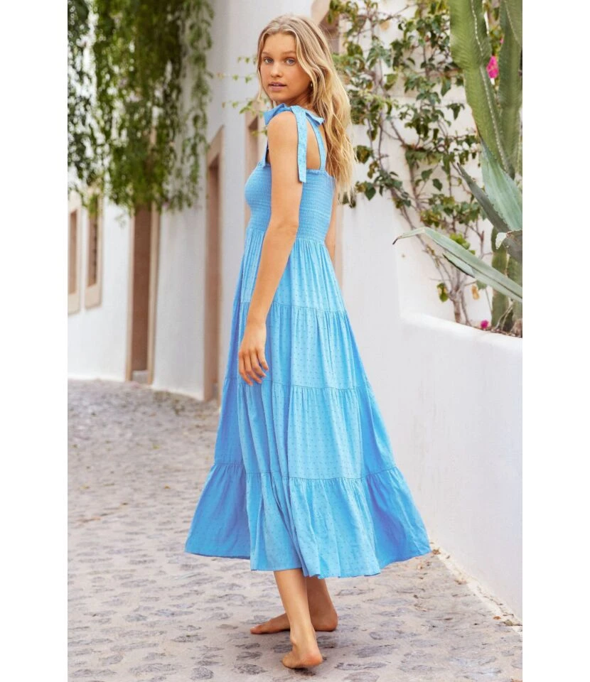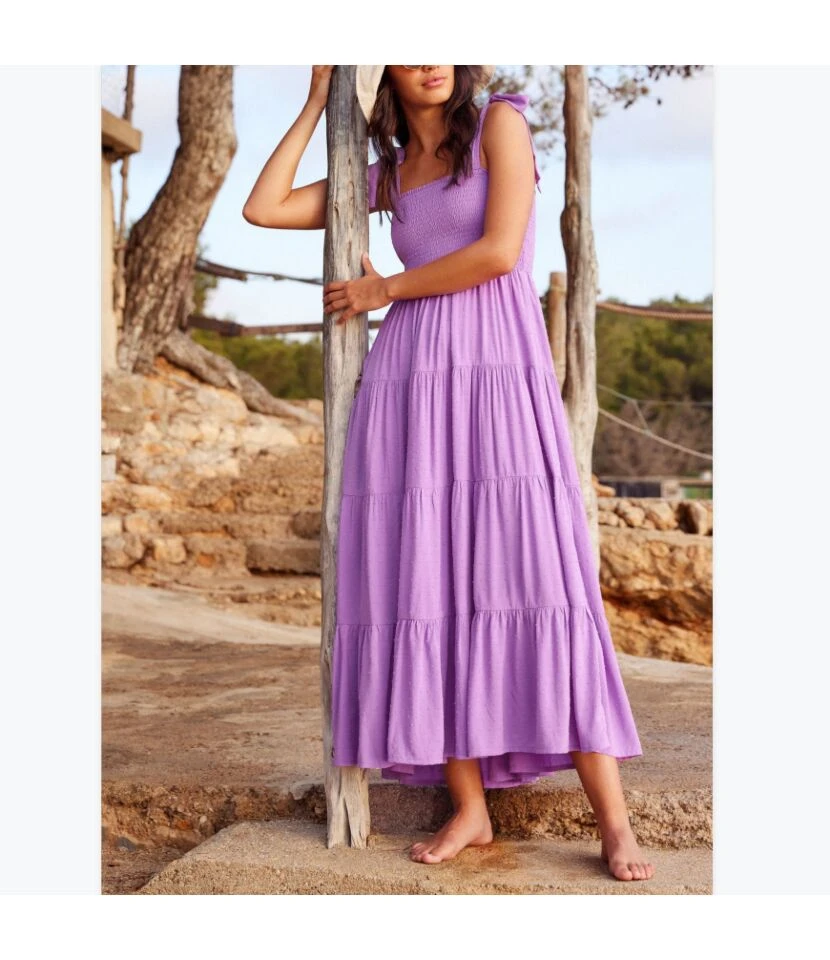 Summer Solid Color Simple Short Sleeve V-Neck Lace-Up Smocked Dress Wholesale Dresses N5323031600444