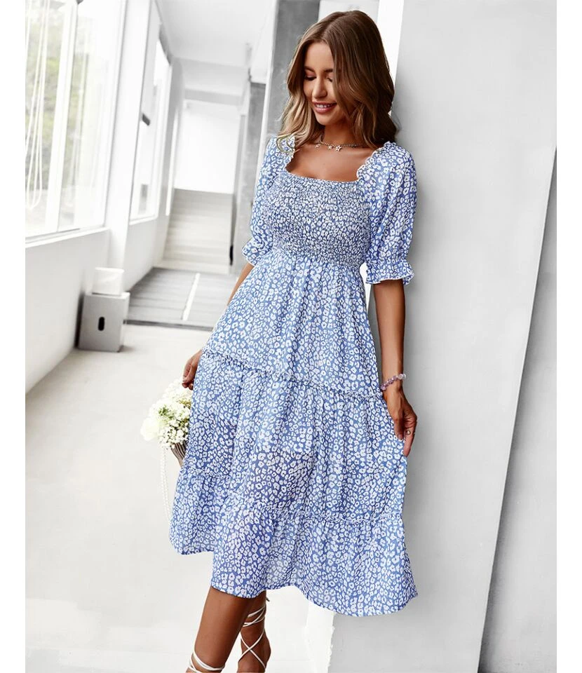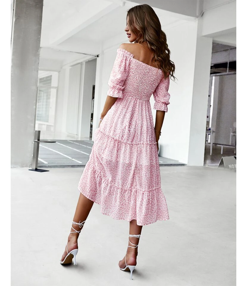 Sexy Off Shoulder Floral Midi Swing Dress High Waist Petal Sleeve Slim Vacation Wholesale Dresses SDN560630