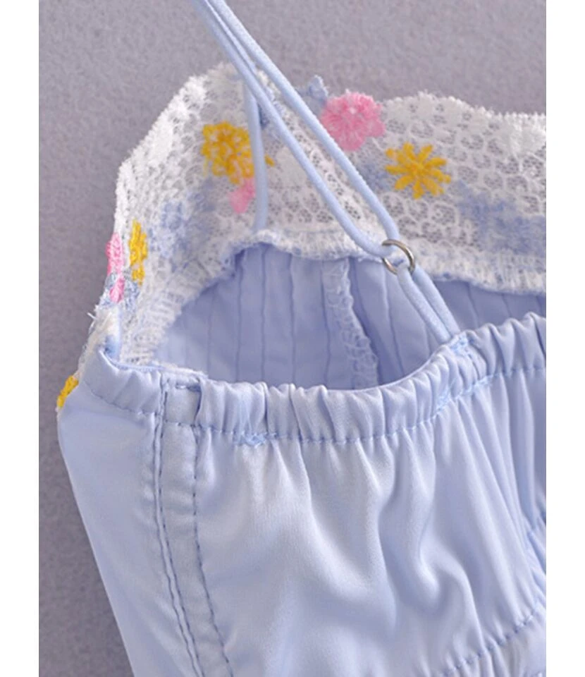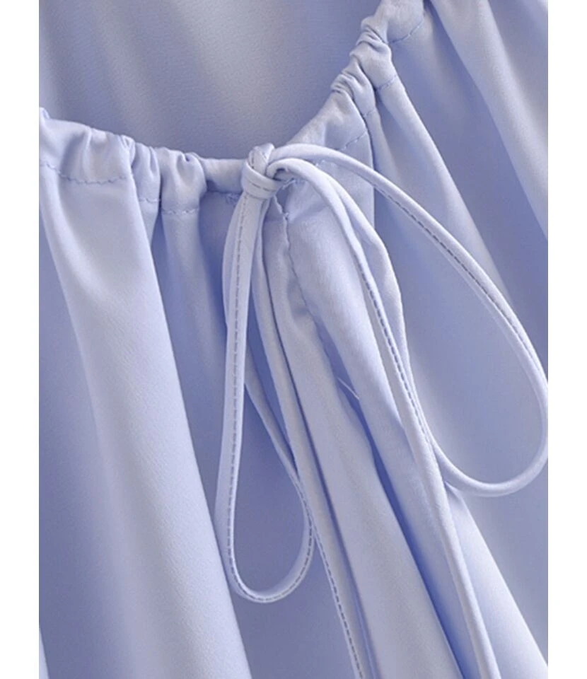 If you are looking for a sexy dress with the sleeveless strap ruffled dress. Then grab the dress as soon as possible. This stunning dress adds beauty to your personality and makes you stylish. The light blue color is available in this dress, which looks more sophisticated. The most beautiful thing about this dress is its strap and sleeveless style.