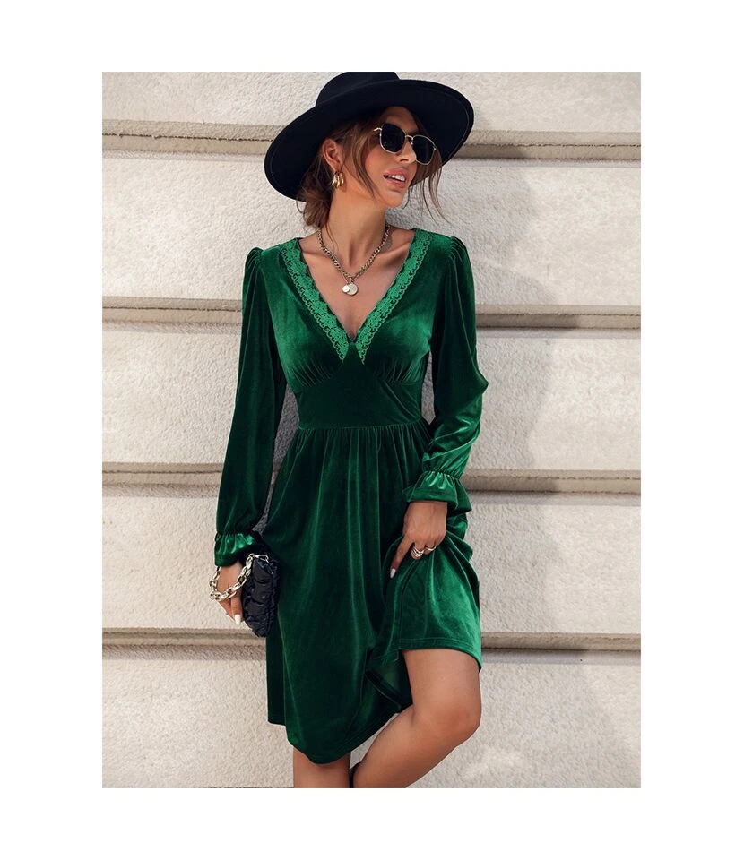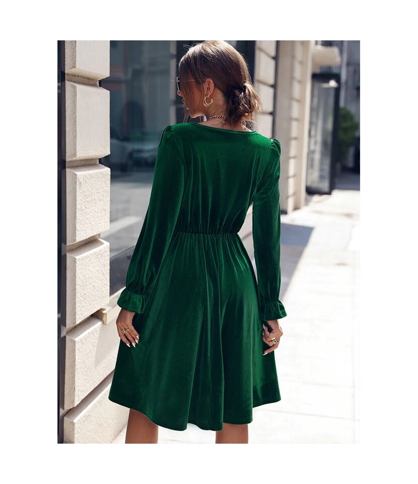 Simple V-Neck Slim Fit Long-Sleeved Solid Color Mid-Length Dress Wholesale Dresses SDV463742