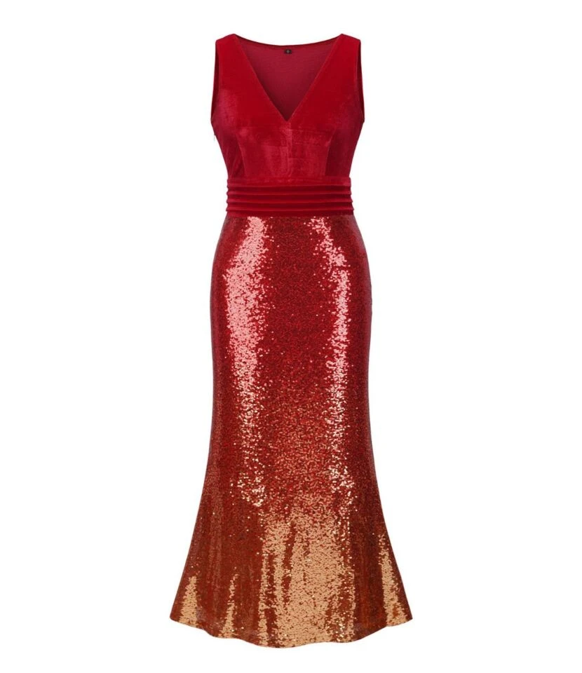 If you are looking for a party dress that can add glam and glitz factor to your look then don’t hesitate to invest in V Neck Velvet Sequin Patchwork Evening Maxi Dress. This outfit is simply fabulous, just look at it from top to bottom its detailing speaks its beauty. This outfit is not demanding just a piece of diamond Necklace is enough for completing the outfit look.