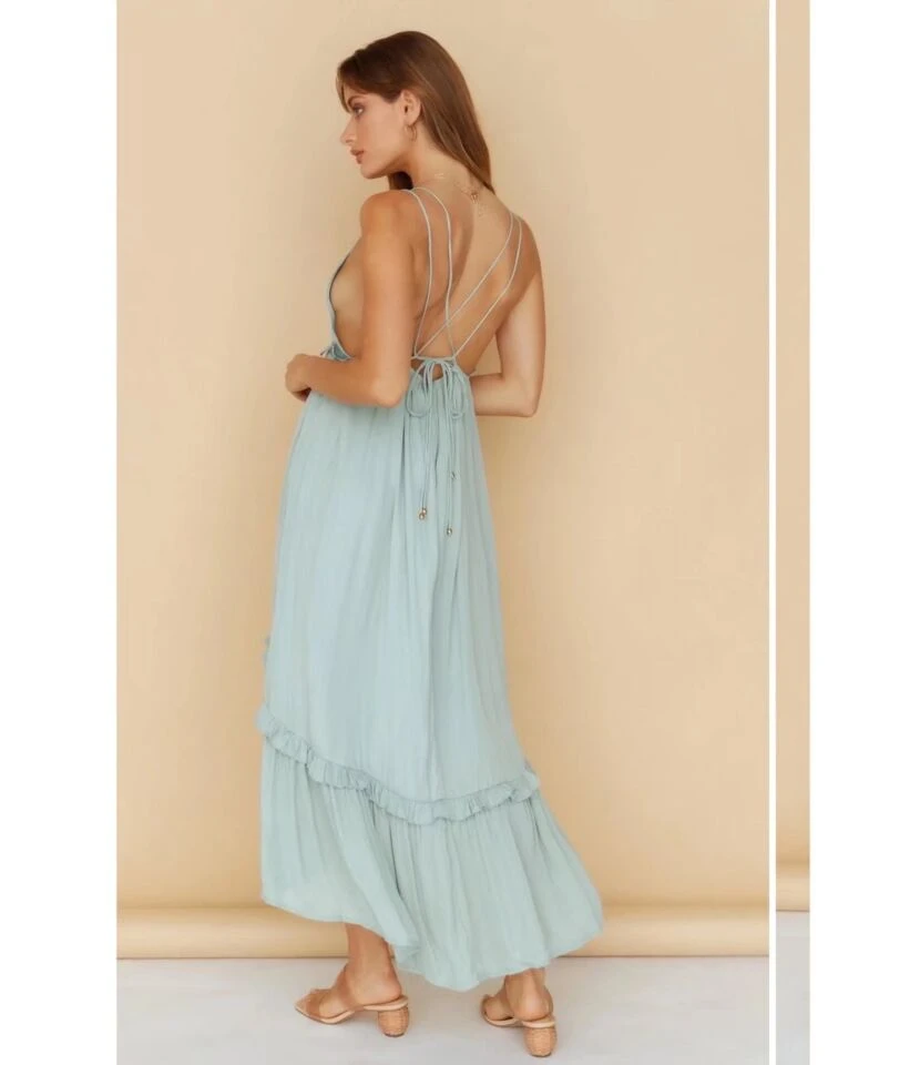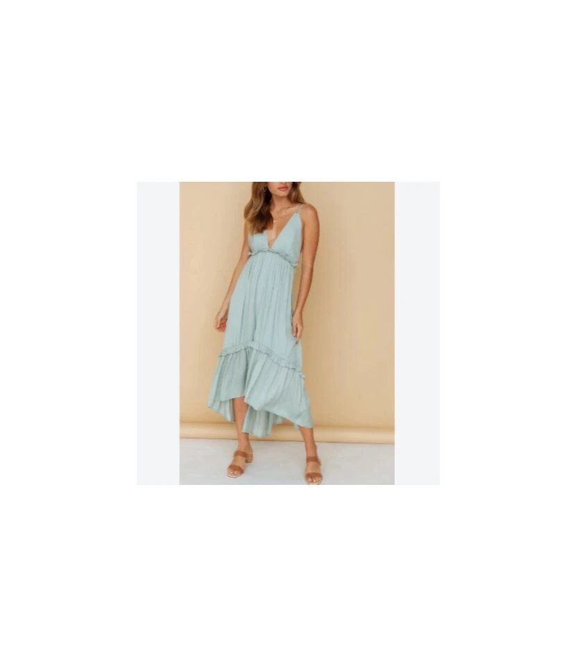 Solid Color Deep V-Neck Backless Sling Irregular Hem Ruffled Dress Vacation Wholesale Dresses SDN533413