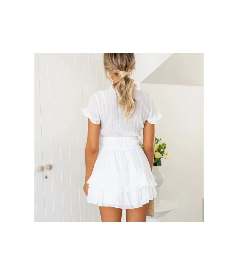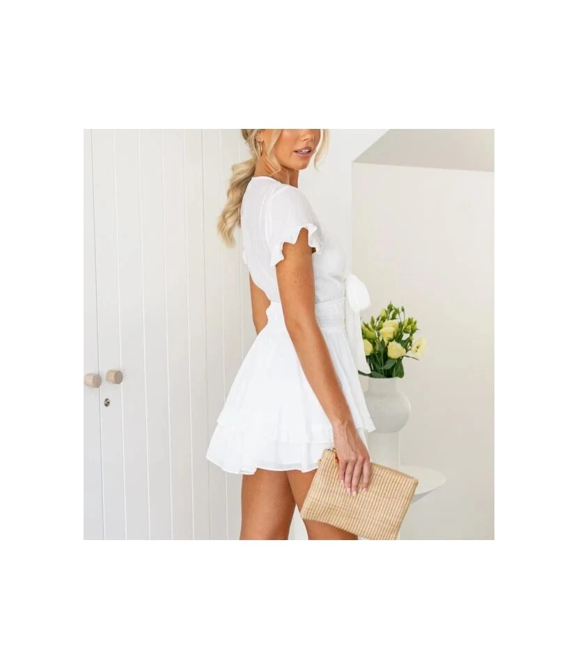 Solid Color Lace-Up V-Neck Layered Ruffled Dress Wholesale Dresses SDN535553