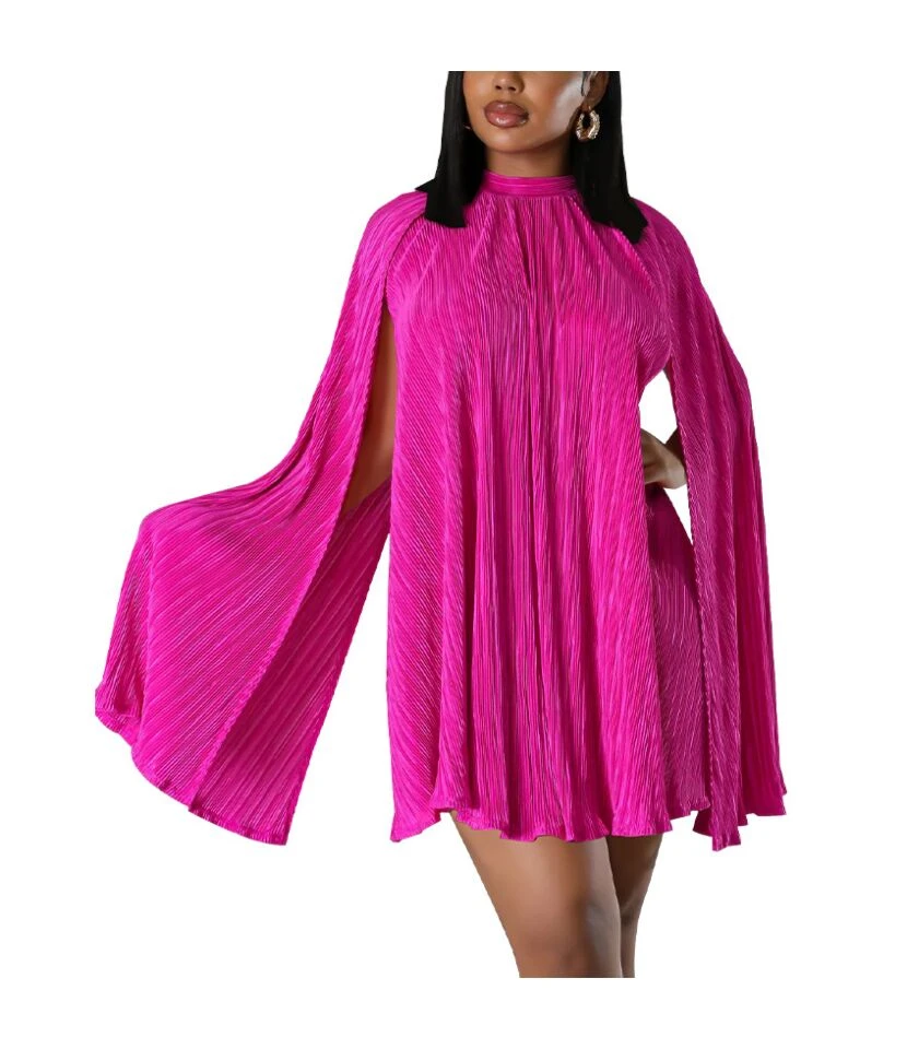 Solid Color Pleated Cape Sleeve Dress Wholesale Womens Clothing N3823103000092