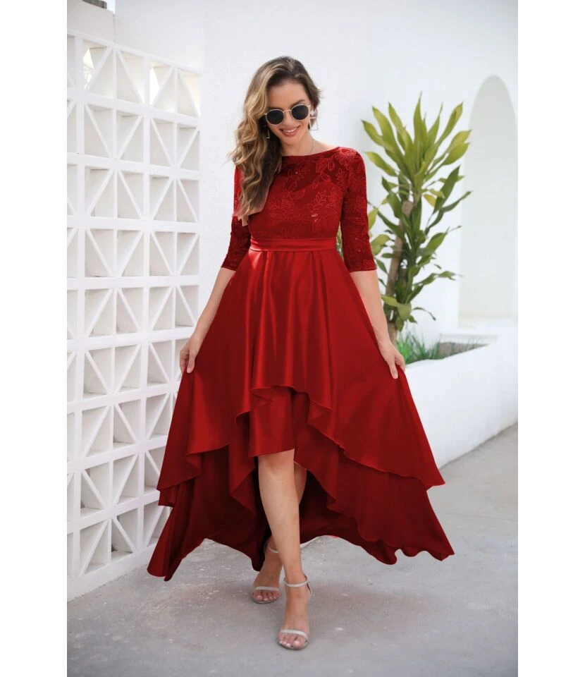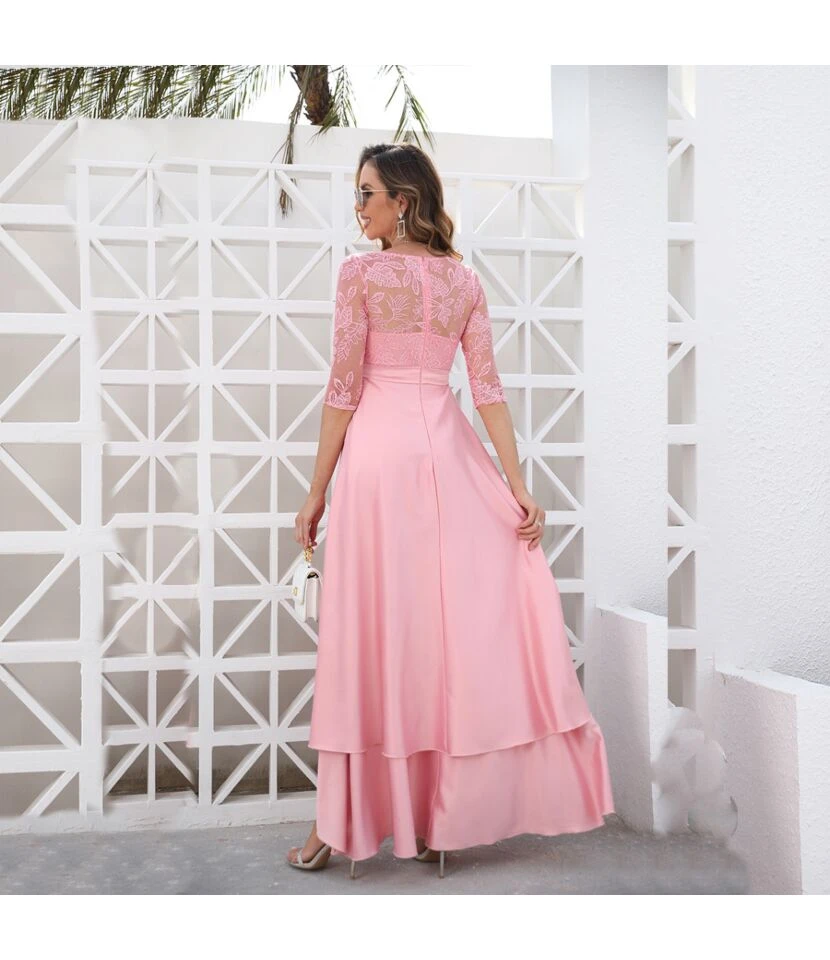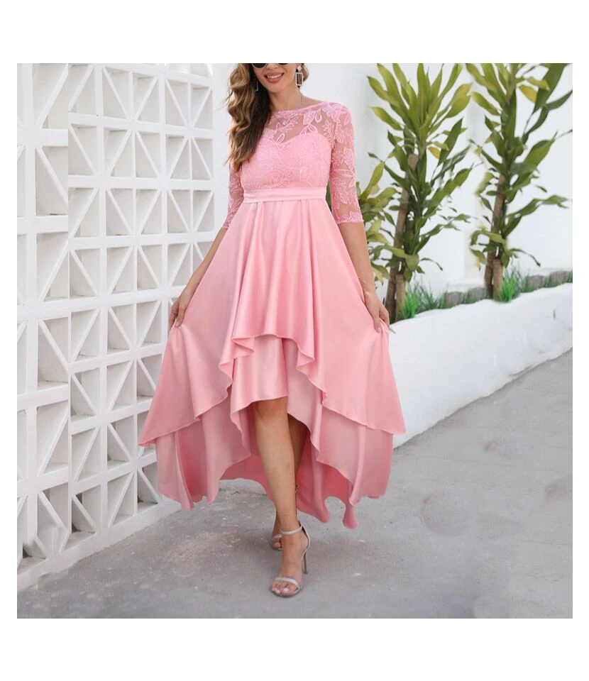 Solid Color Sequin Lace Mid Sleeve Crew Neck Tail Evening Wedding Dress Wholesale Dresses SDN533471
