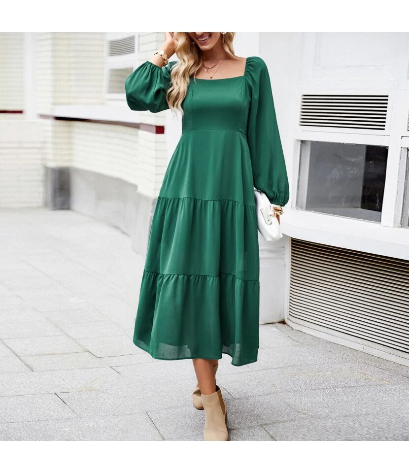 Solid Color Square Neck Temperament Elegant Dress Wholesale Dresses