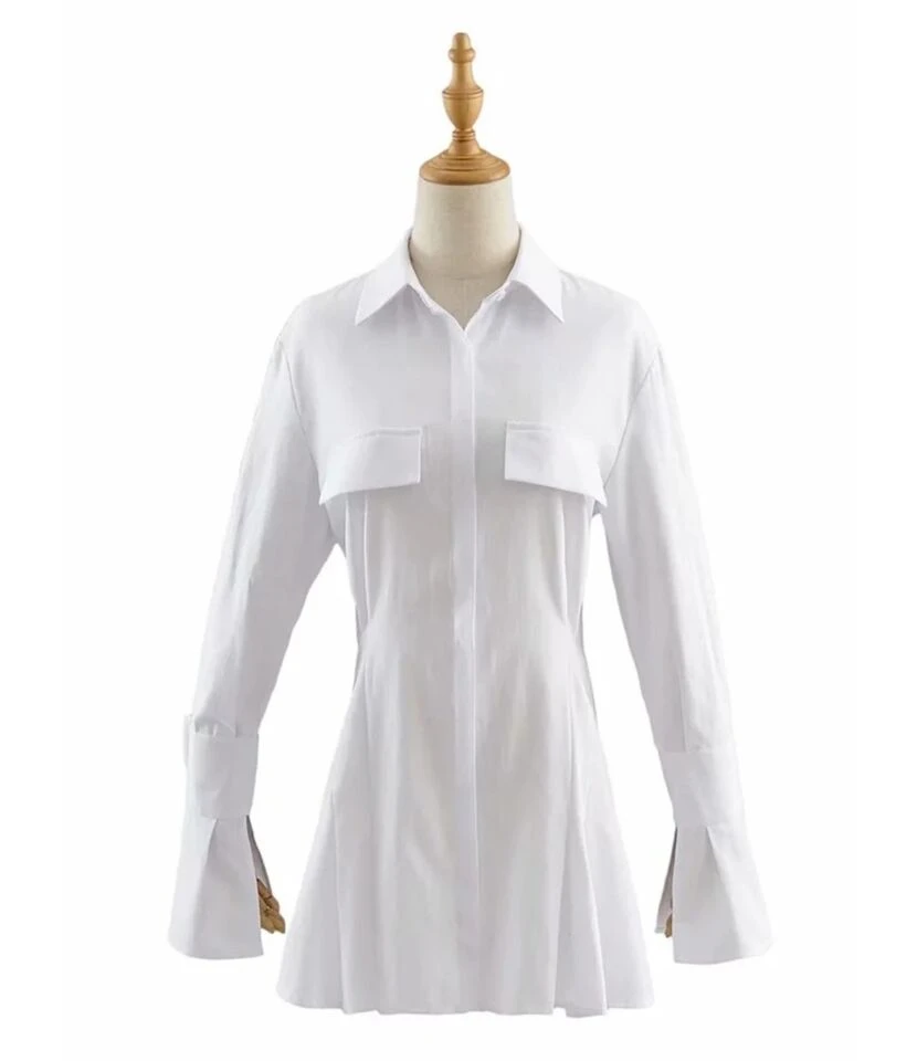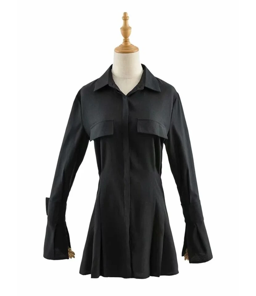 Solid Color Turn Down Collar Cargo Style Shirt Dress