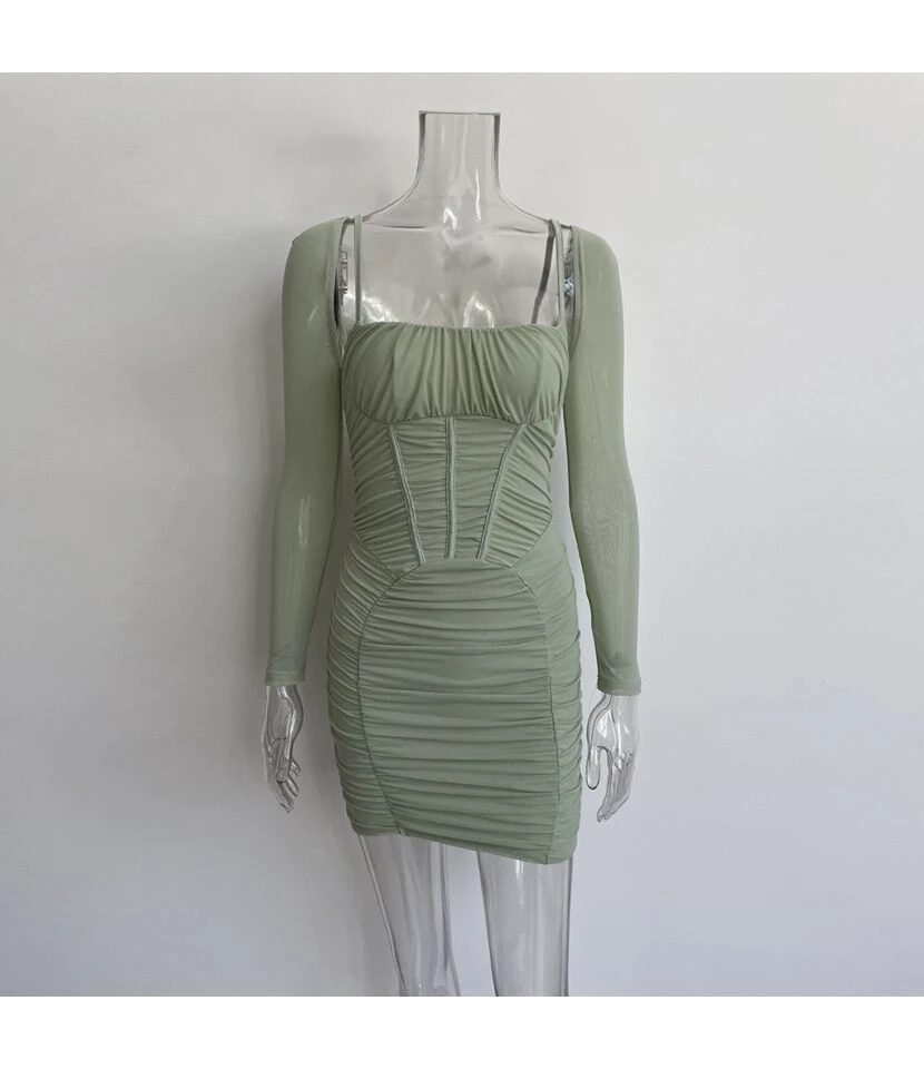 Solid Low Cut Pleated Mini Dress SD080270