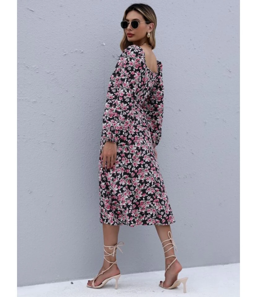 SQUARE NECK FLORAL PRINTED HIGH WAIST