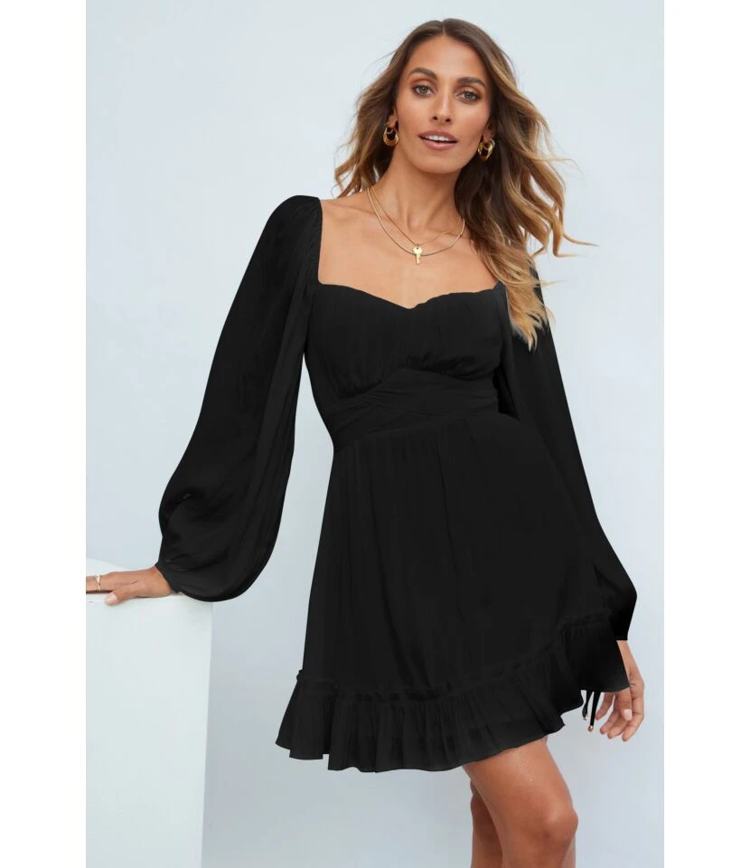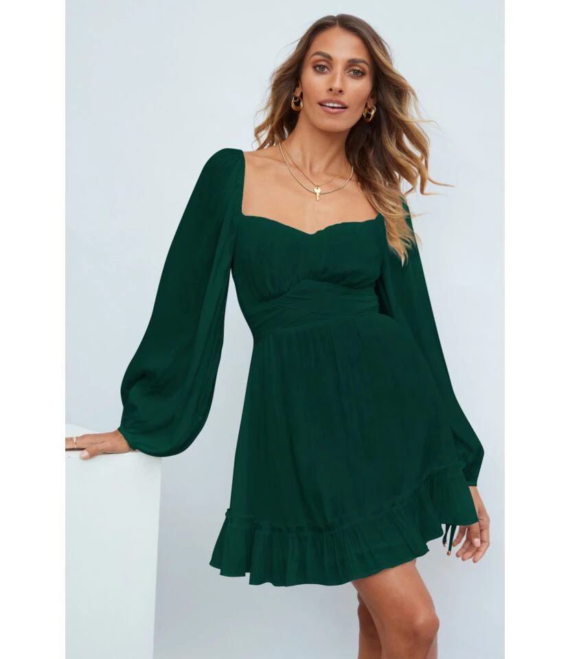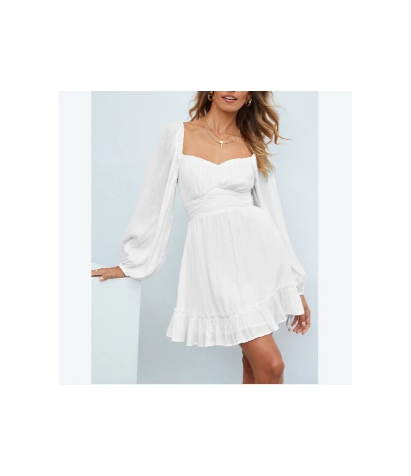 Square Neck Solid Color Lantern Sleeve Ruffles Lace-Up Swing Dress Vintage Wholesale Dresses SD531198