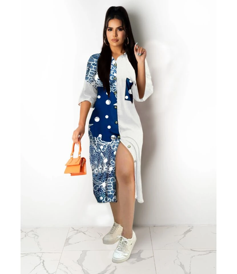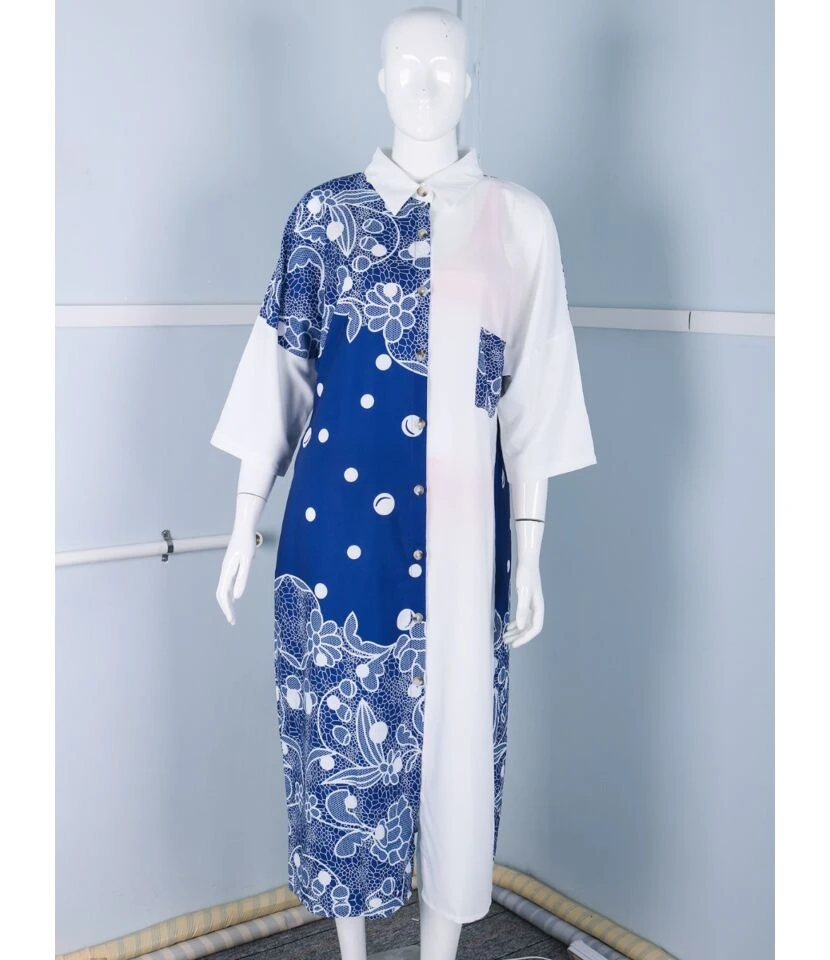Stitching Print With Floral Shirt Cardigan Sunscreen Long Short-Sleeved Dress In 2 Way SD150031