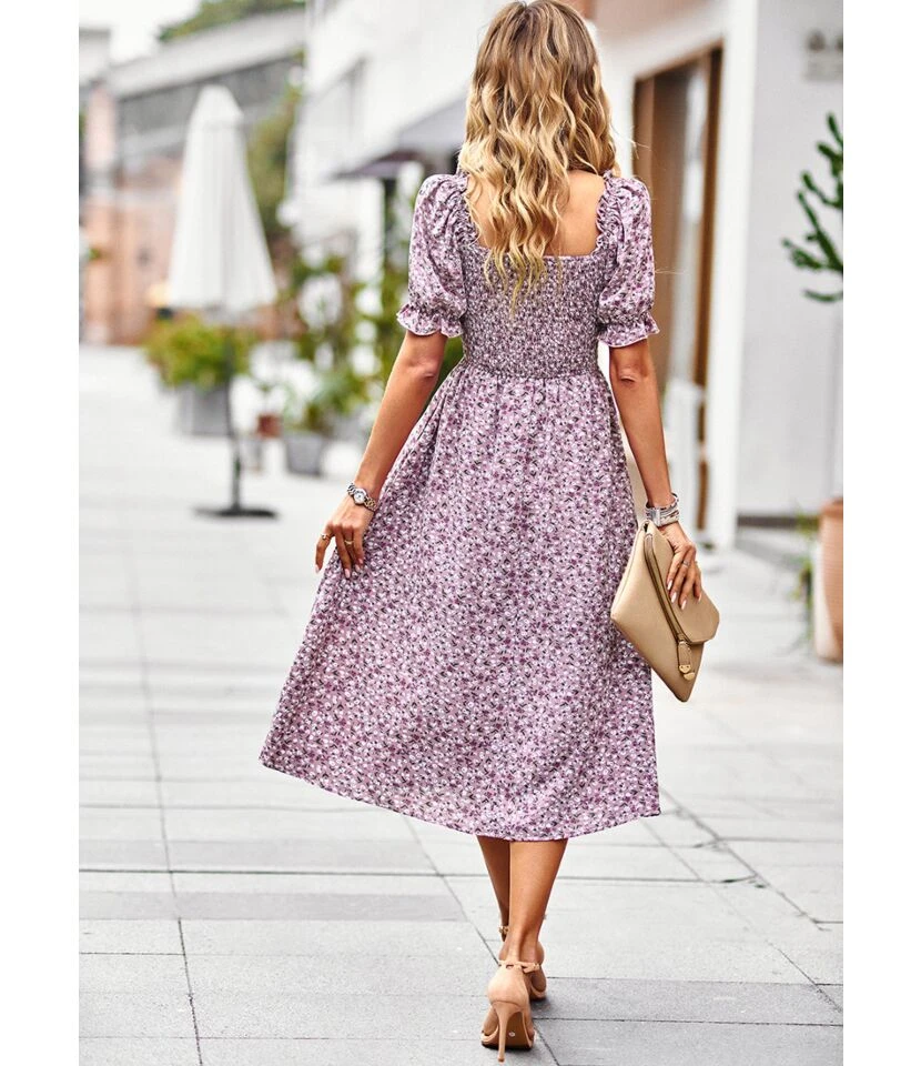 Summer Puff Sleeve Casual Square Collar Floral Swing Dress Wholesale Dresses N5323022200257