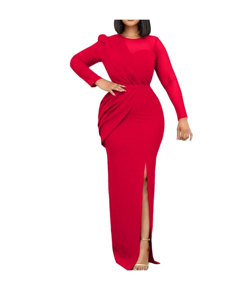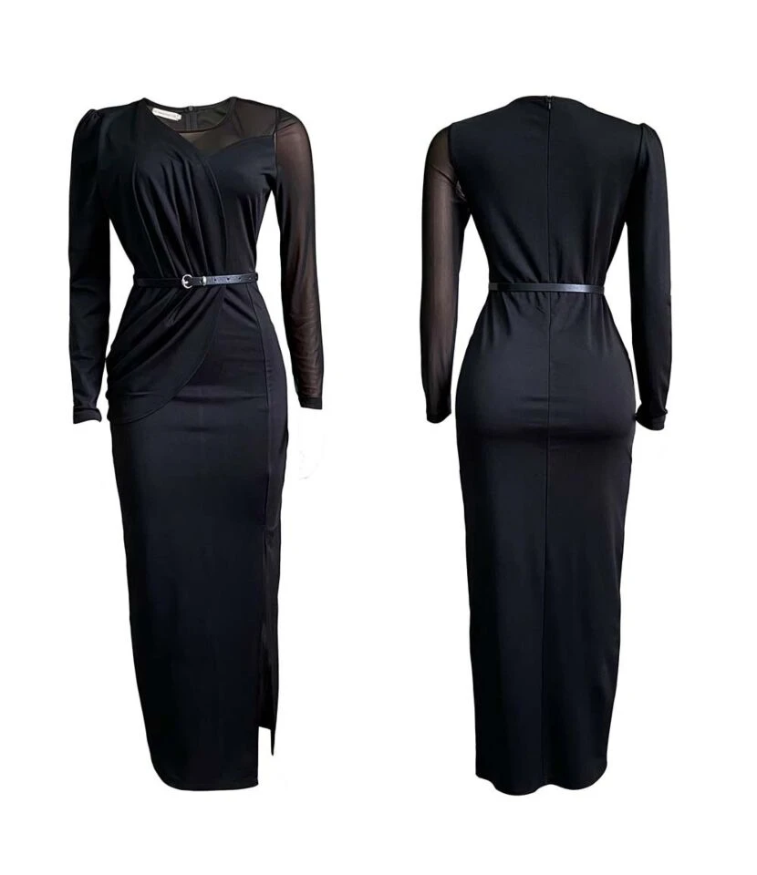Temperament Solid Color Mesh Splicing Package Hip Pencil Dress Wholesale Dresses N5923080800068