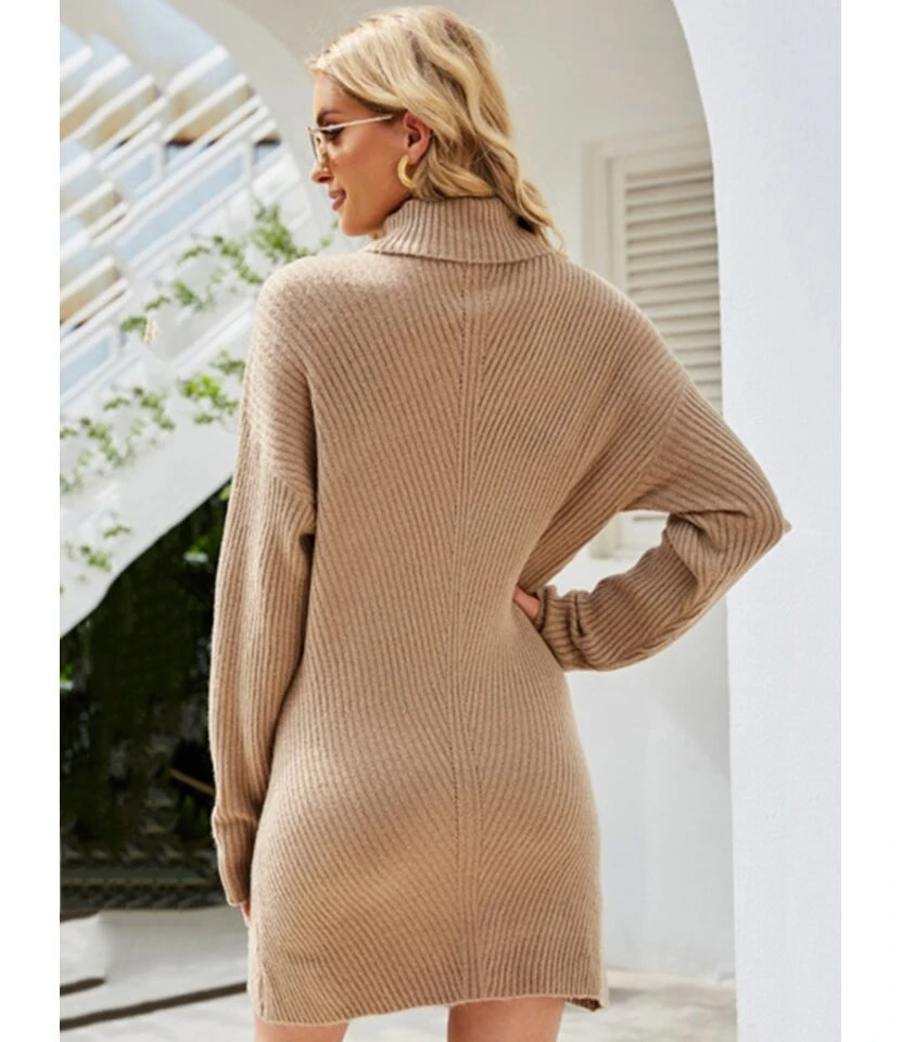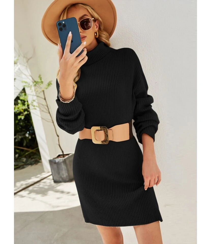 Turtleneck Solid Knitting Sweater Short Dress Without Belt 210826930